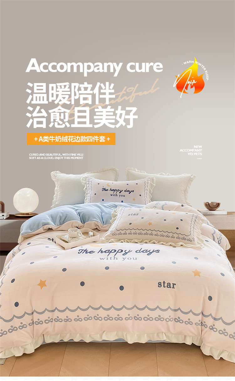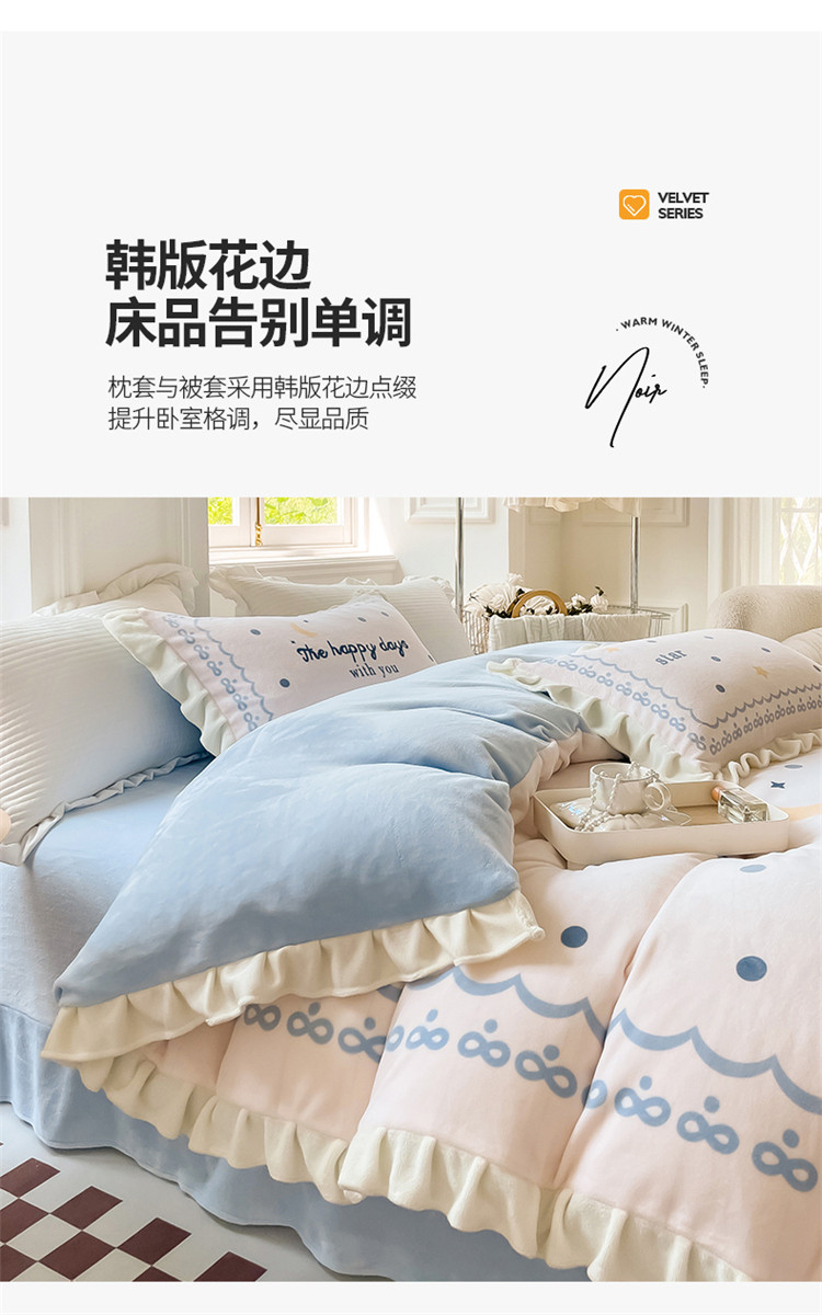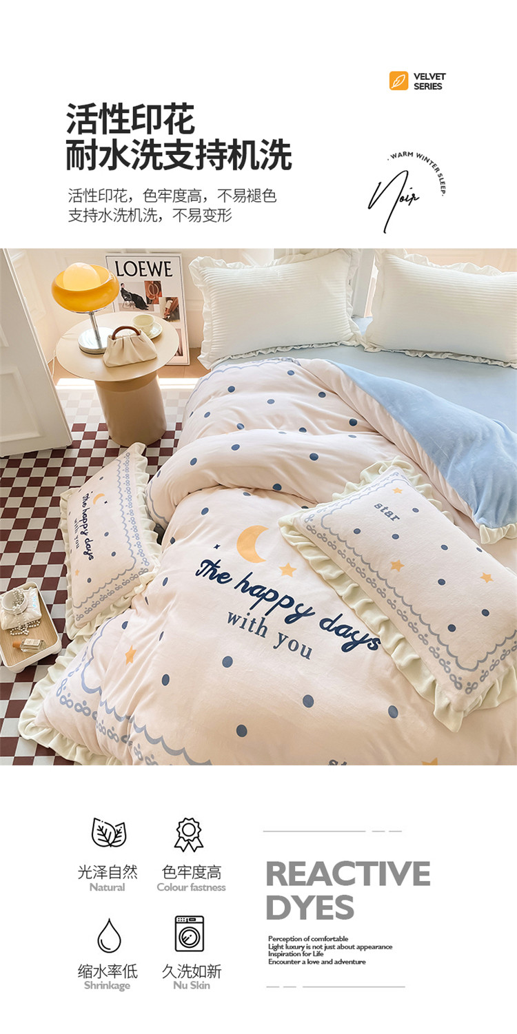商品名称:懒猫 2022新款大版牛奶绒花边款四件套 星空