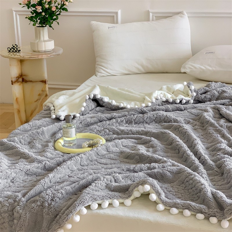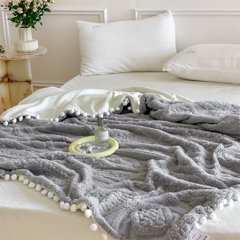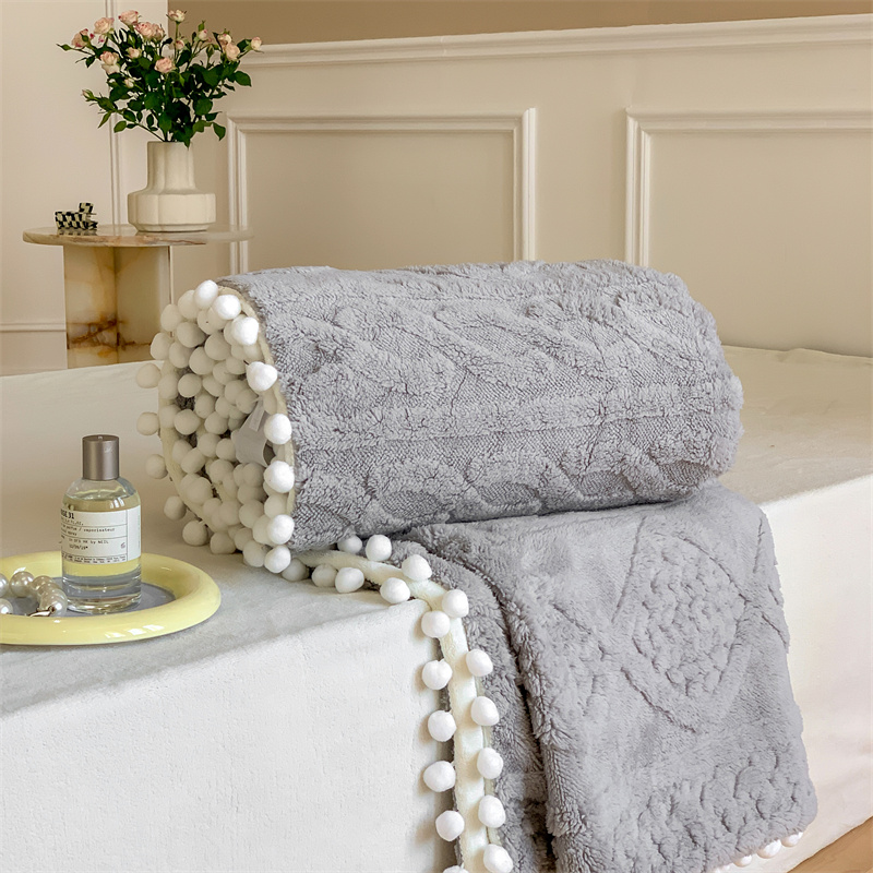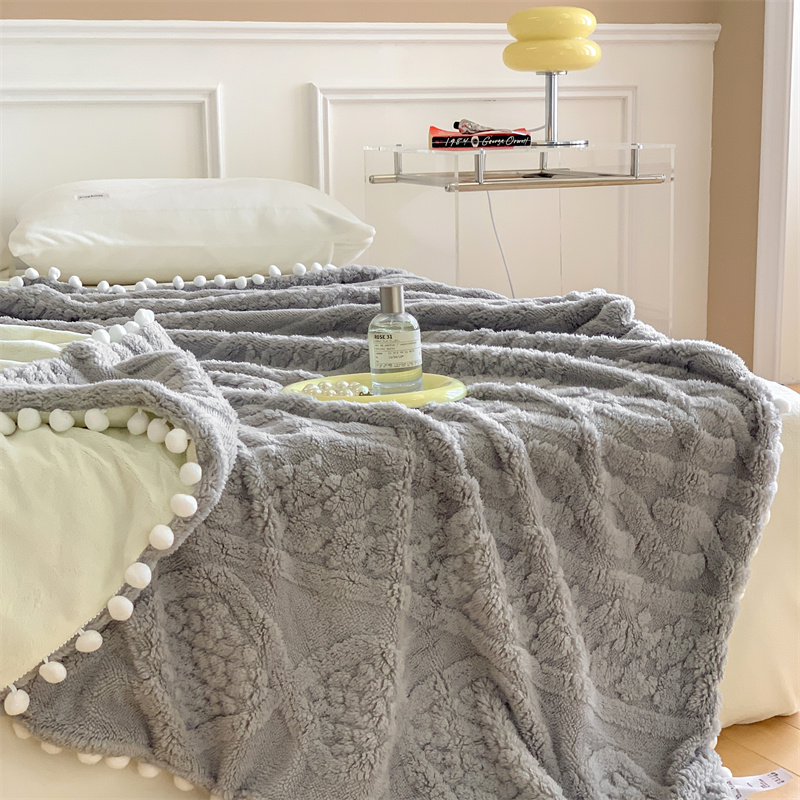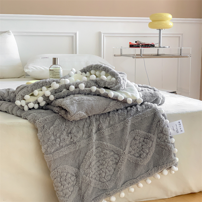 洋铭区 2022新款a版舒棉绒b版牛奶绒毯子-糖豆系列 糖豆灰