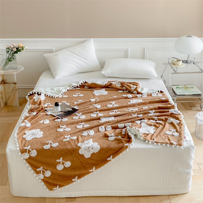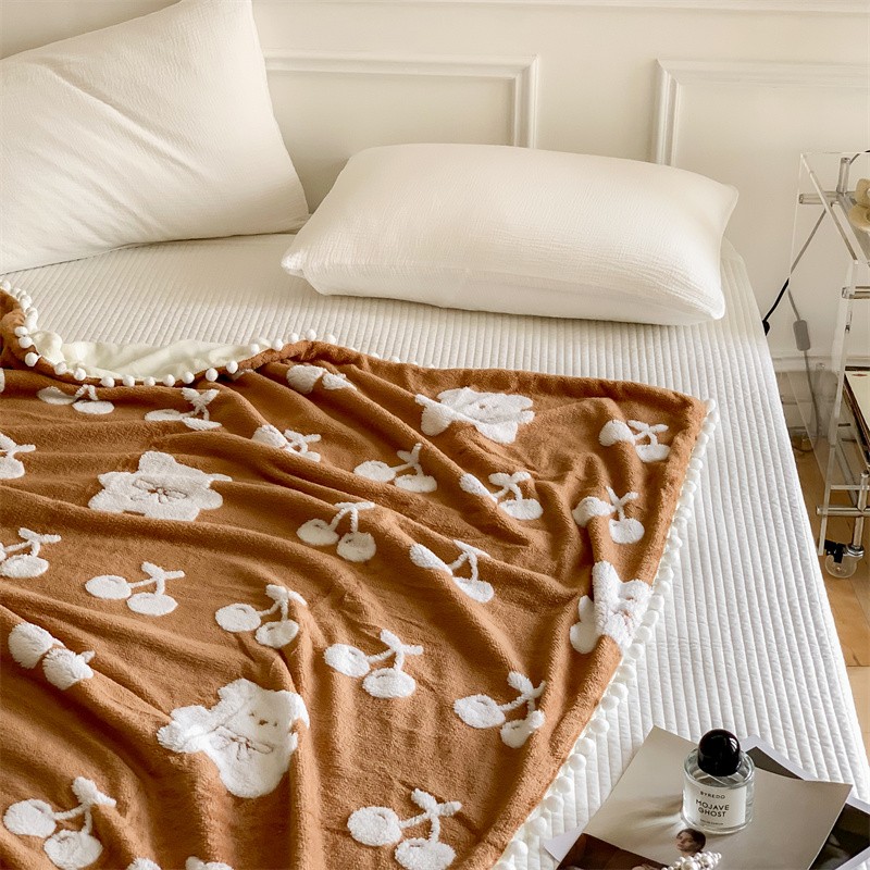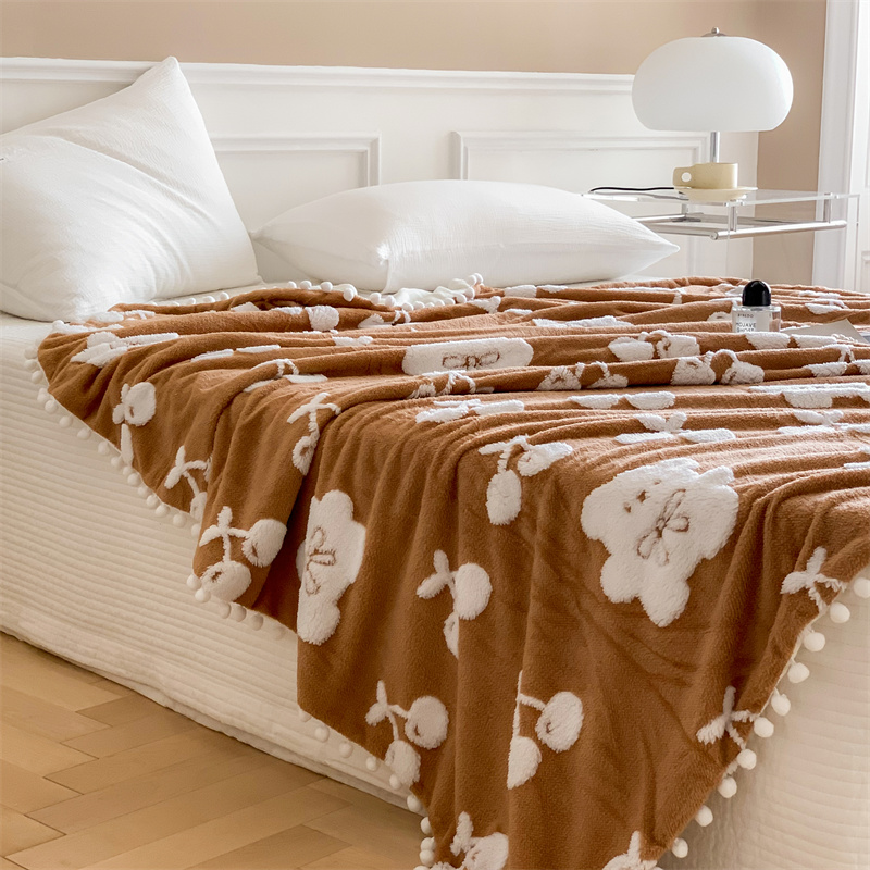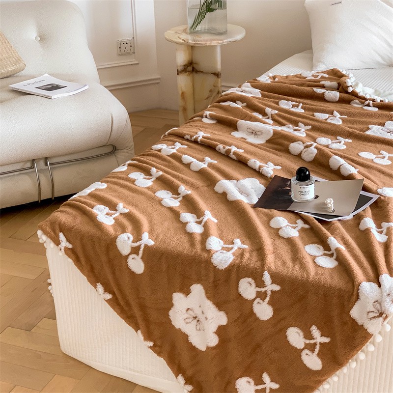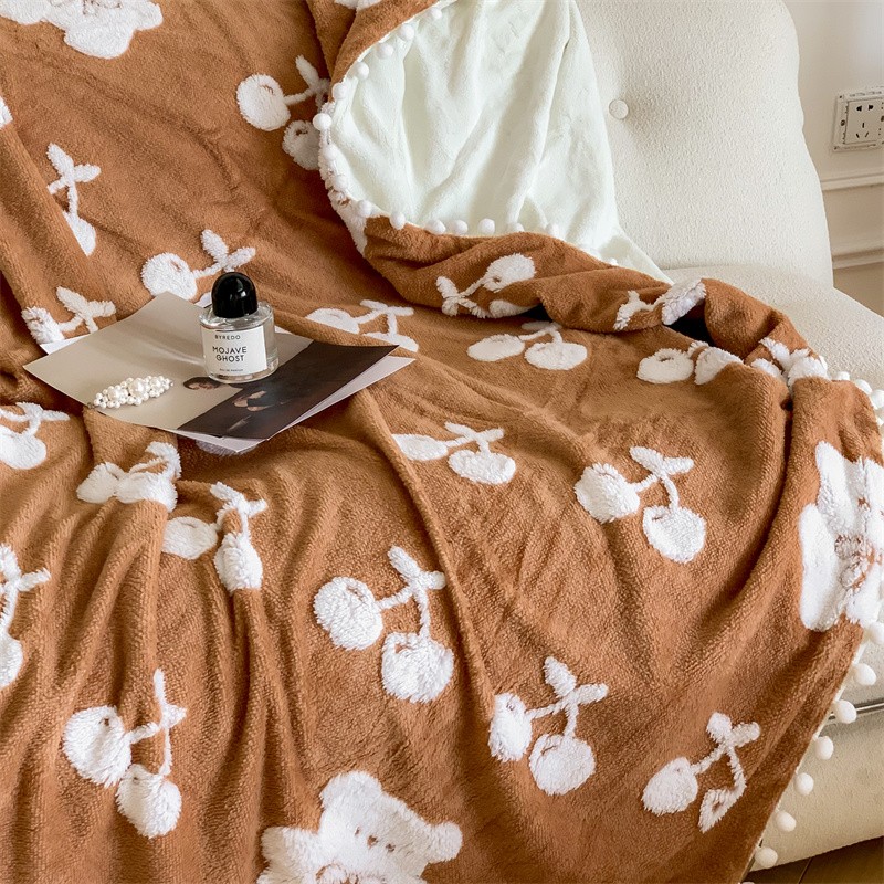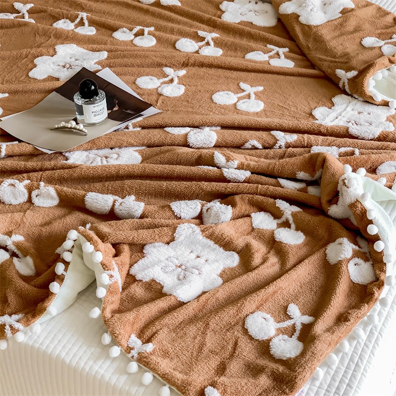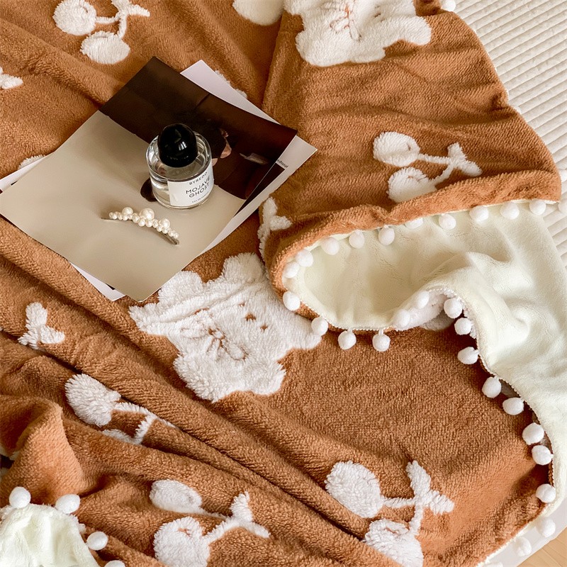 商品名称:洋铭区 2022新款a版舒棉绒b版牛奶绒毯子-樱桃小熊 樱桃小熊棕