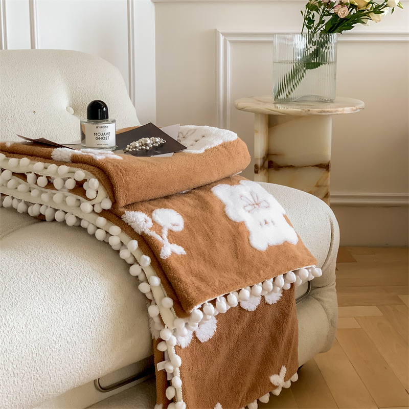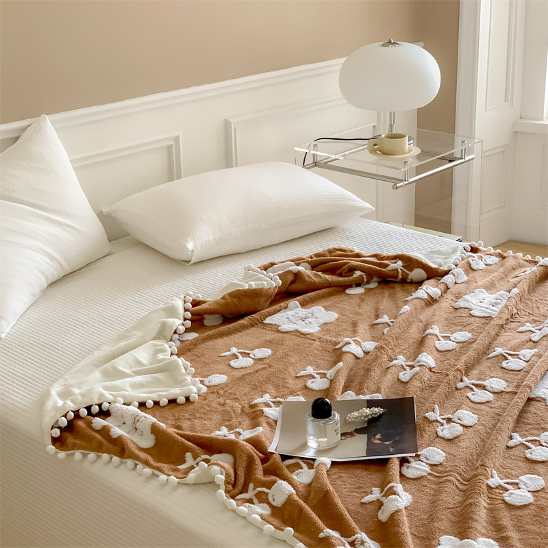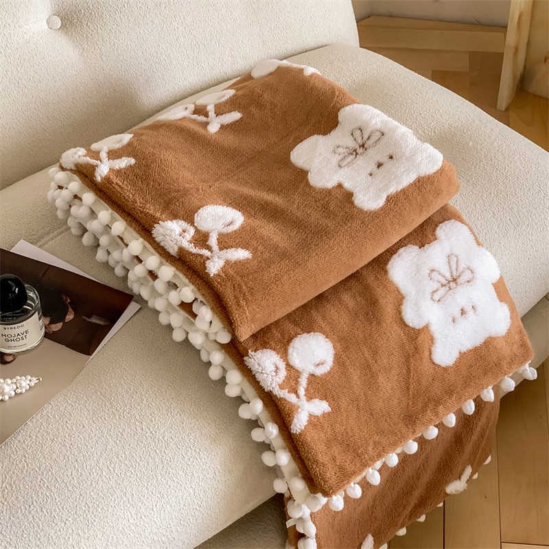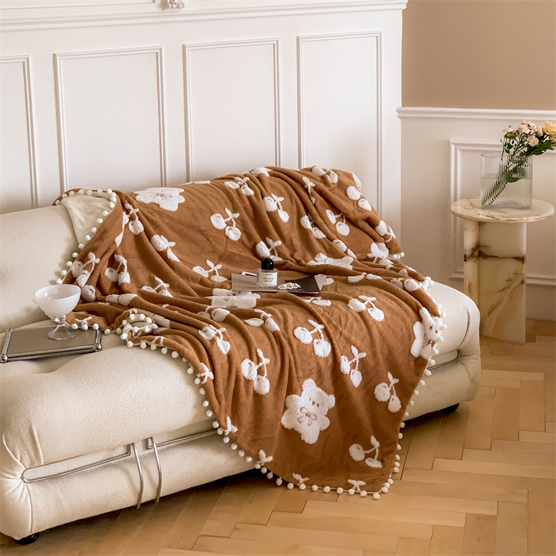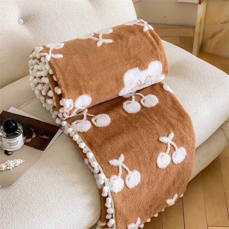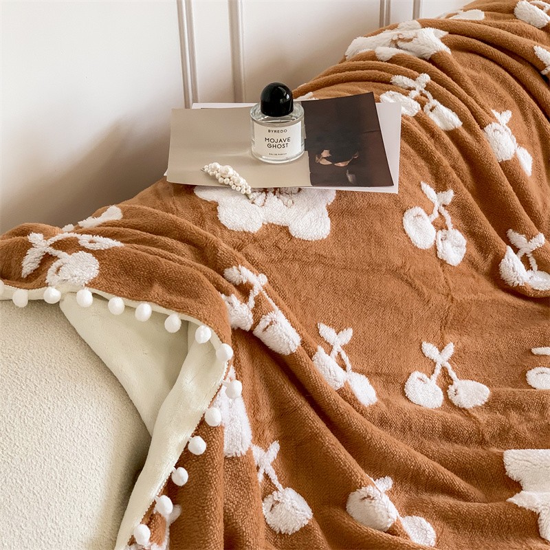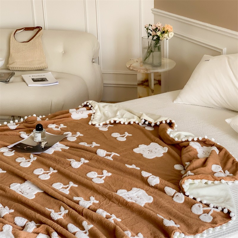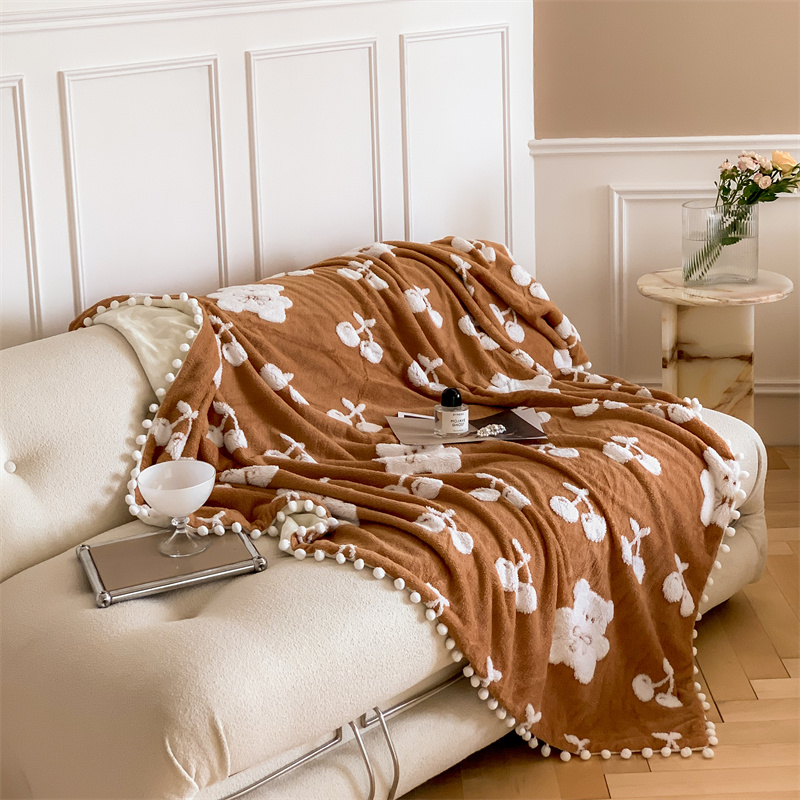 商品名称:洋铭区 2022新款a版舒棉绒b版牛奶绒毯子-樱桃小熊 樱桃小熊棕
