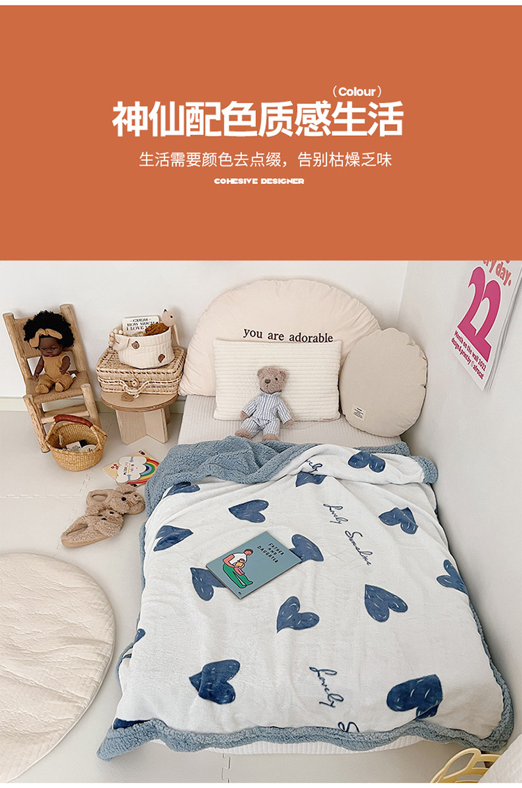 商品名称:航途席业 20263新款软绵绵牛奶绒羊羔绒毛毯 爱心蓝