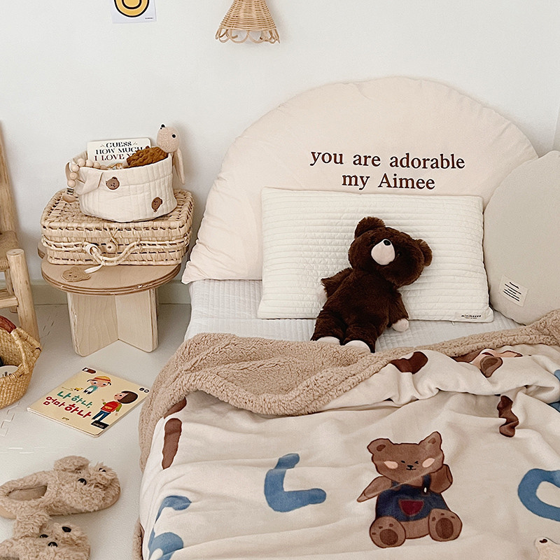 航途席业 2023新款软绵绵牛奶绒羊羔绒毛毯 字母熊