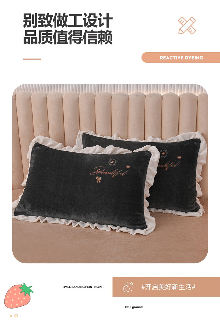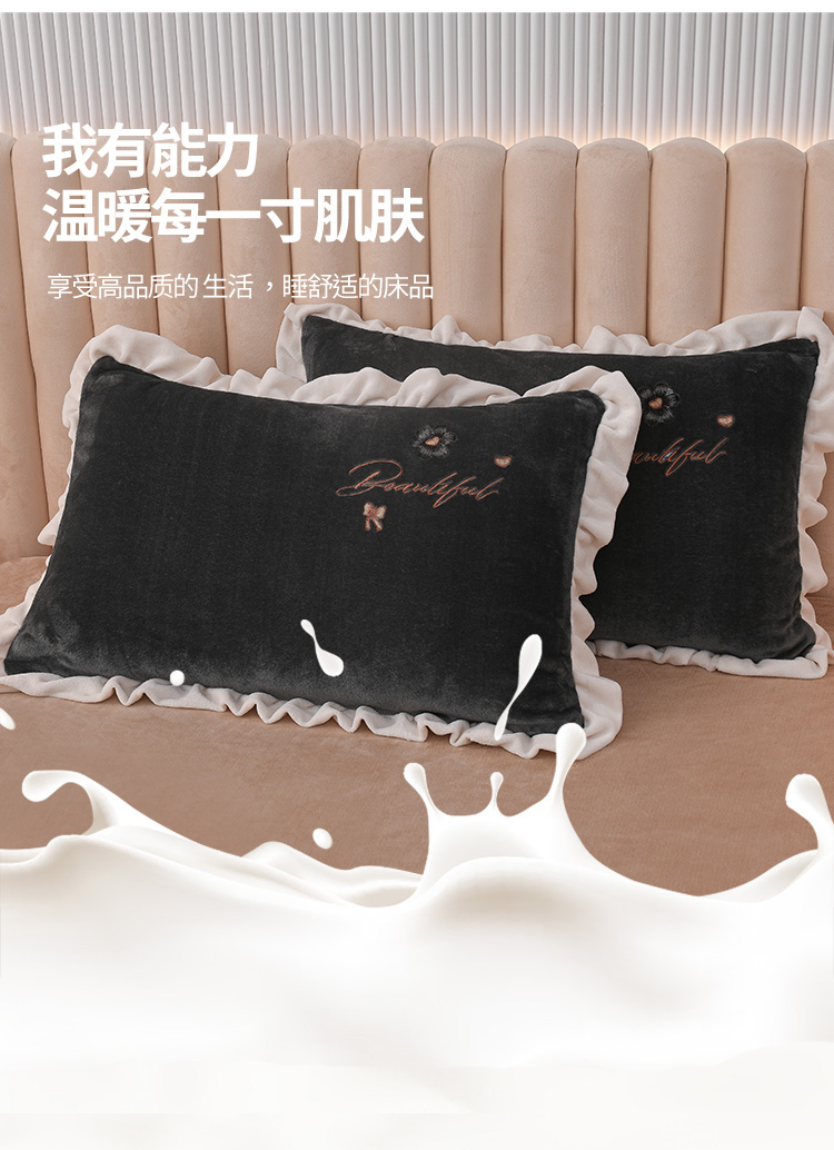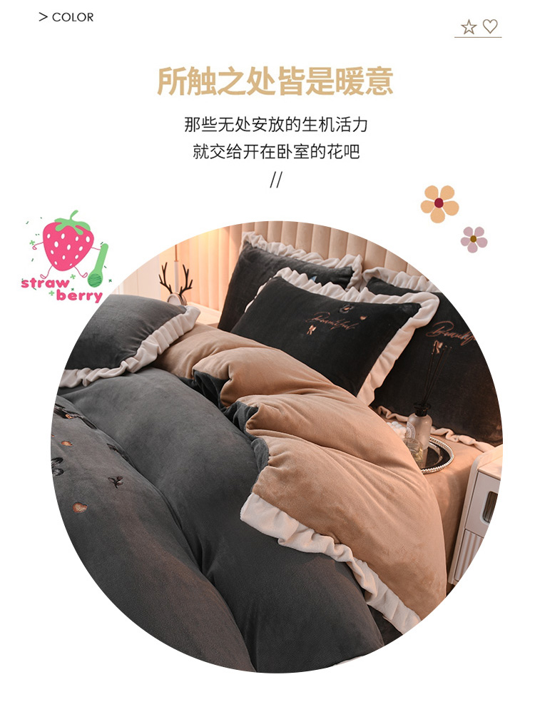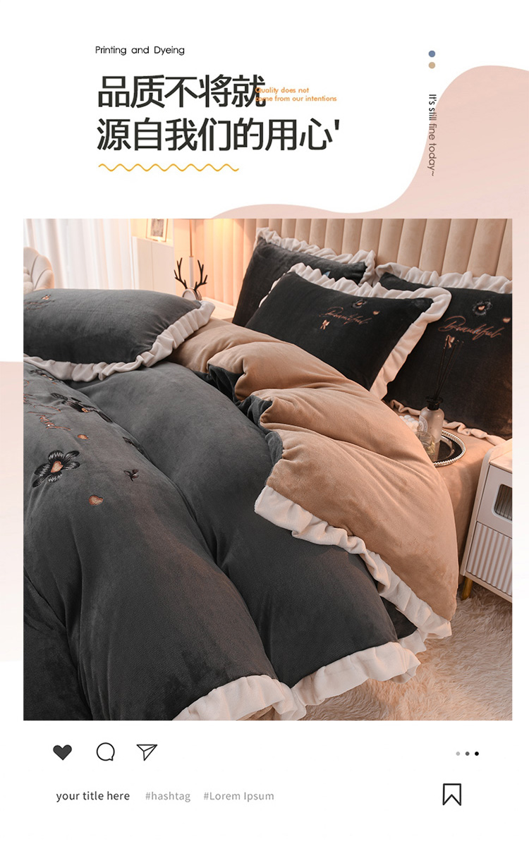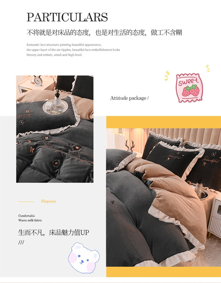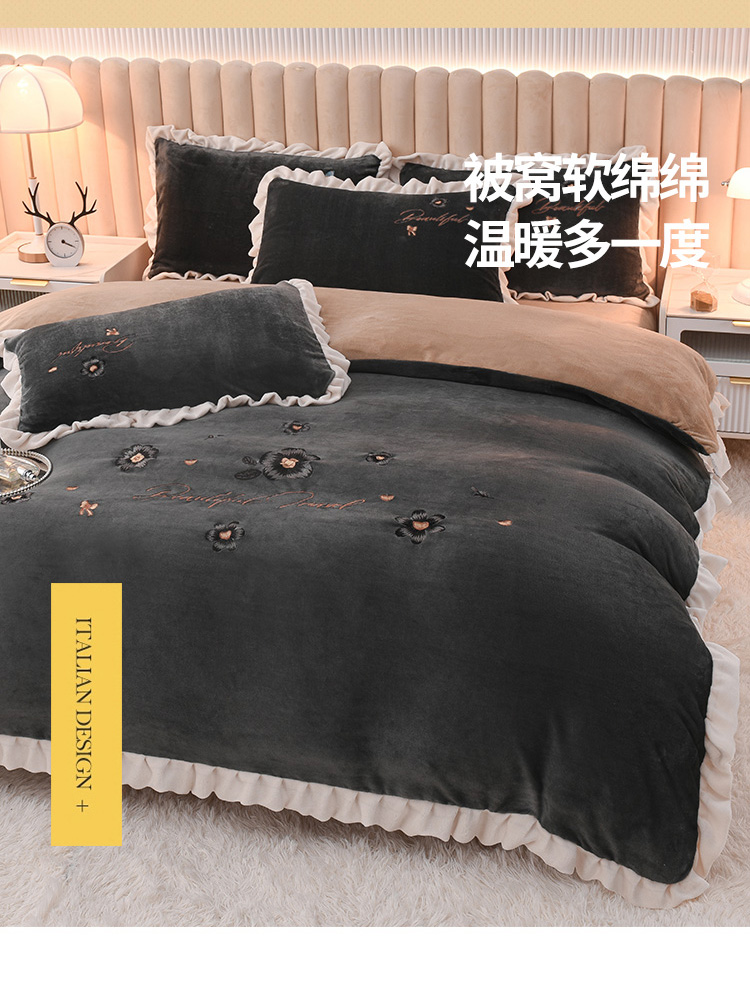 芃成 2022新款加厚保暖牛奶绒绣花四件套 花漾 高级灰