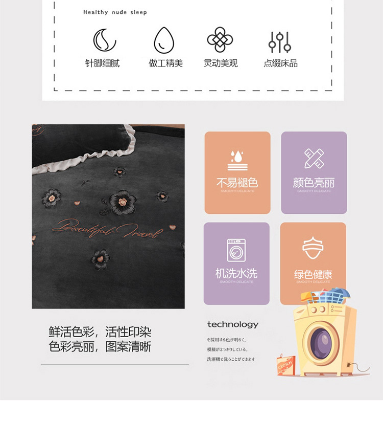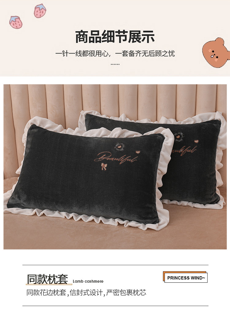 商品名称:芃成 2022新款加厚保暖牛奶绒绣花四件套 花漾 高级灰