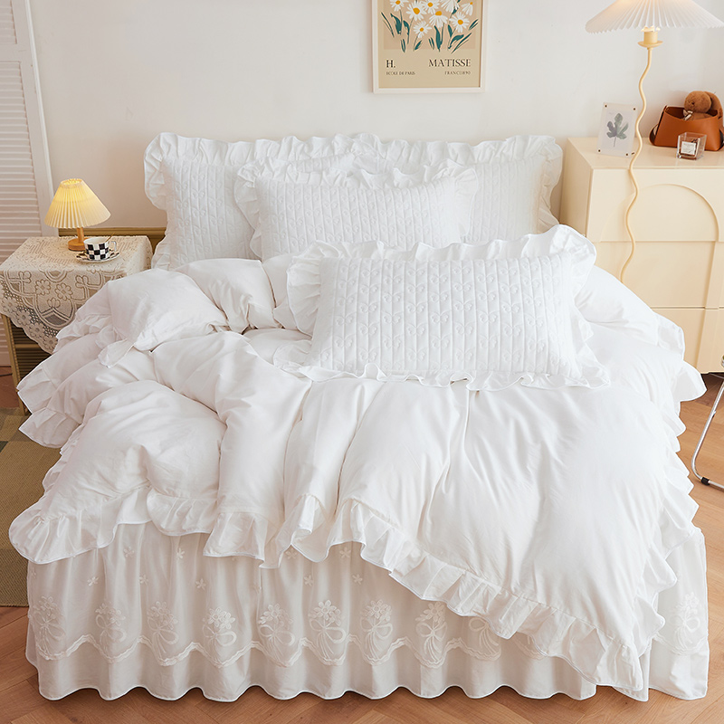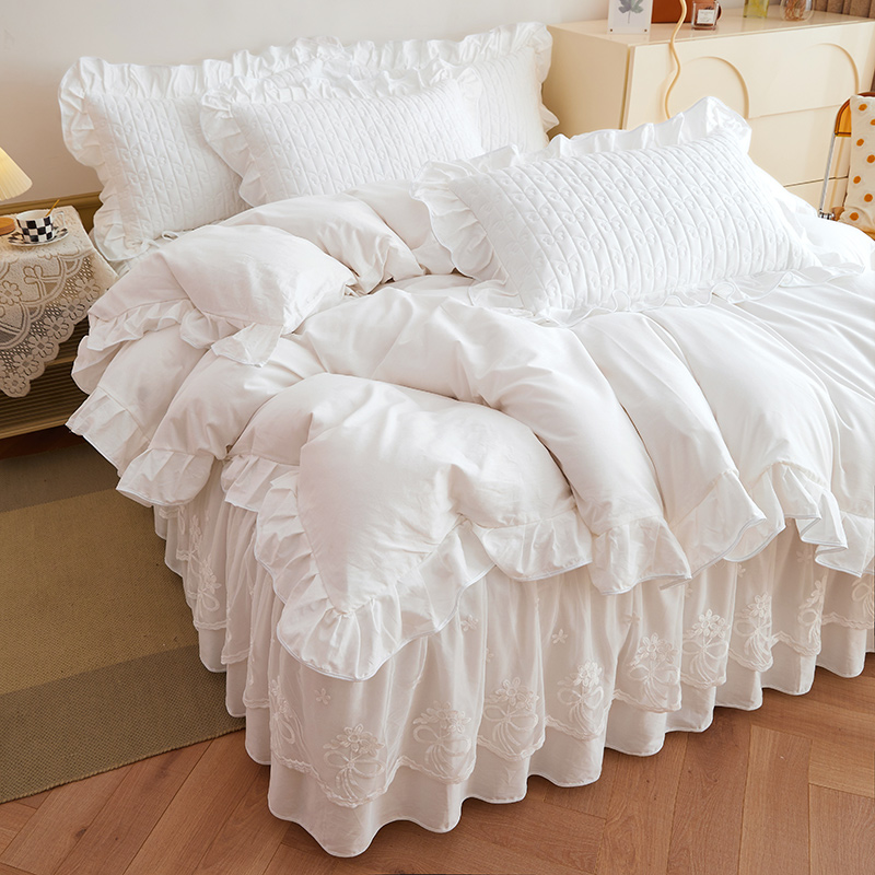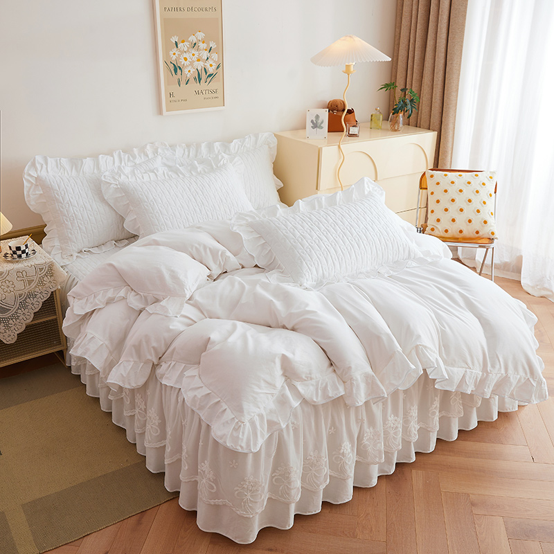 当前位置: 91家纺网 > 商品网购 > 床品套件 > 四件套 > 全棉普通四件套 > 宜凡 2023新款四季款全棉夹棉床裙四件套 春禾集 瓷白