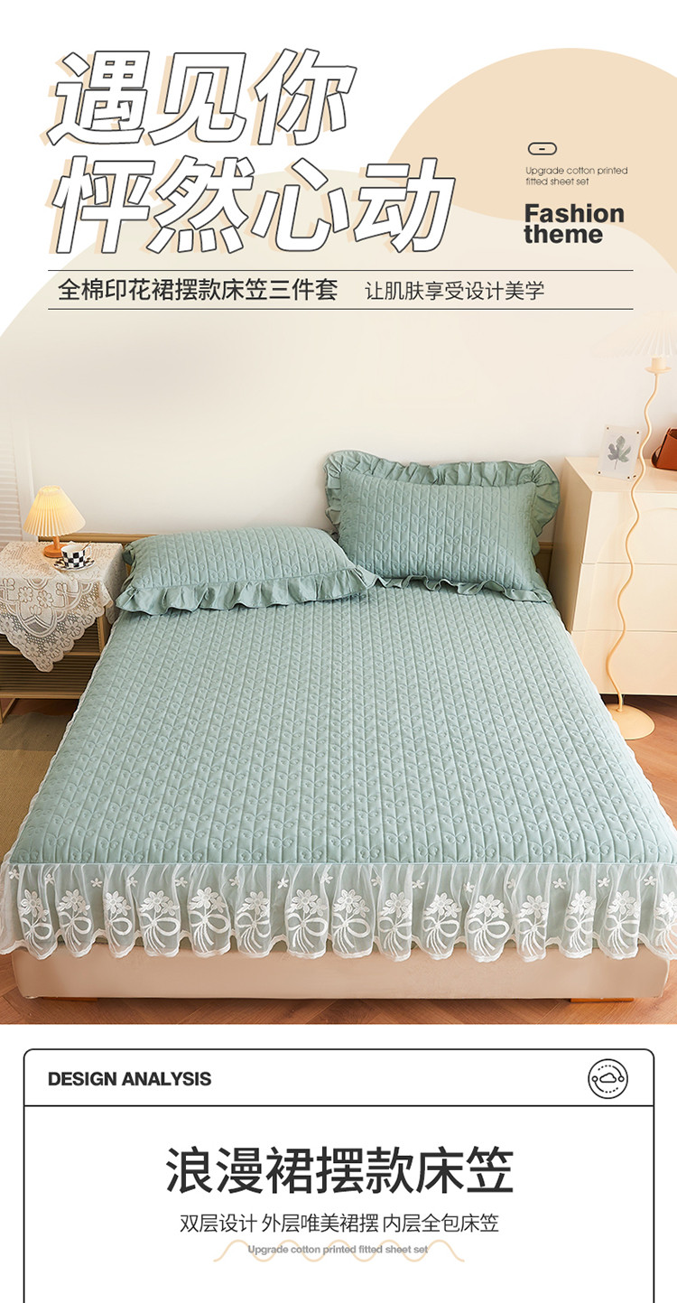 (总)宜凡家纺 2025新款全棉数码印花床裙三件套系列一,静若幽兰,浮云织梦,梦幻花园,陌上花开