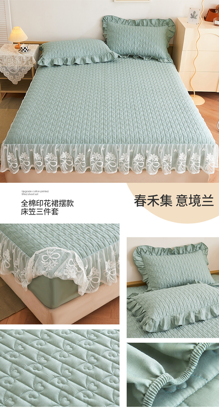 宜凡 2023新款四季款夹棉小清新床笠三件套 春禾集 意境兰