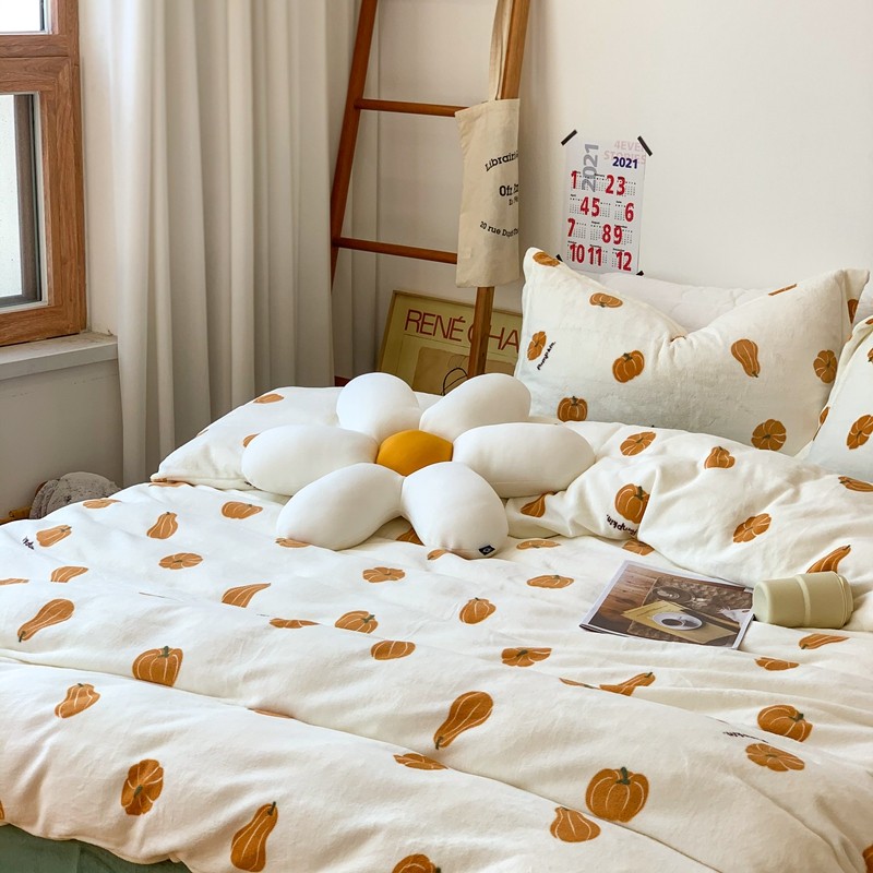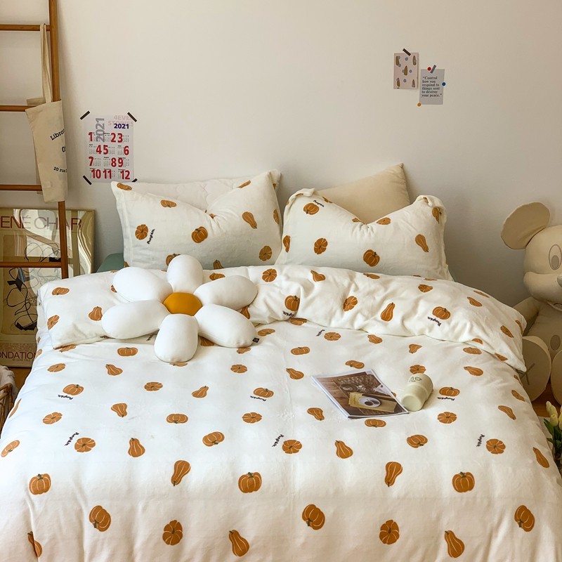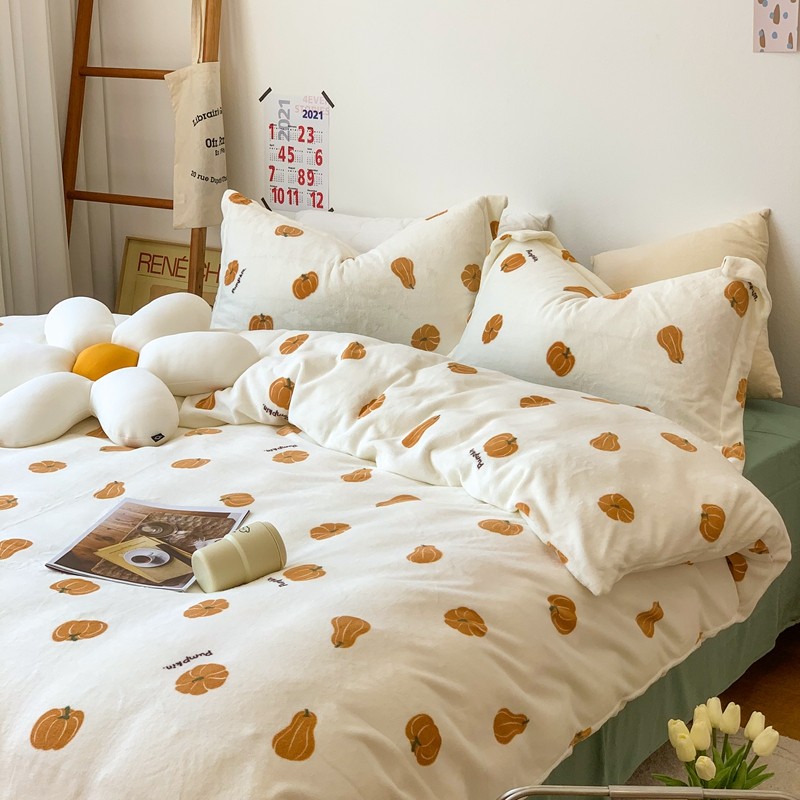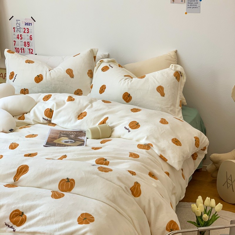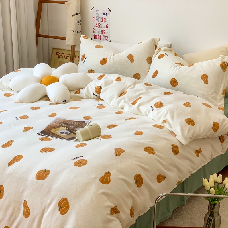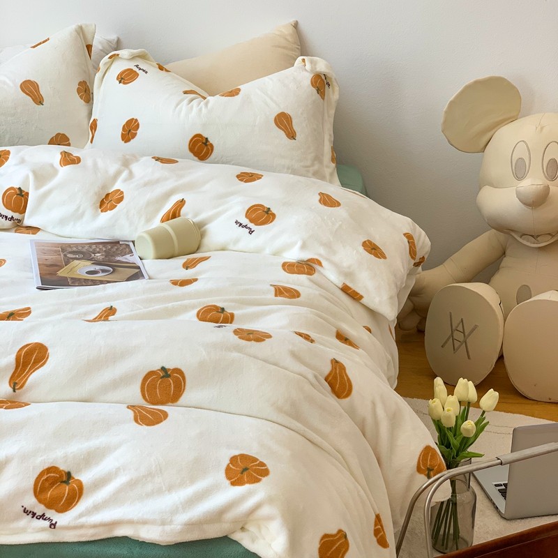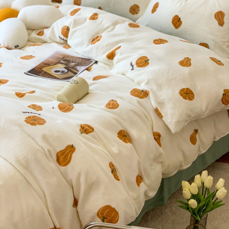 时年 2022新款全消光牛奶绒印花四件套 小南瓜