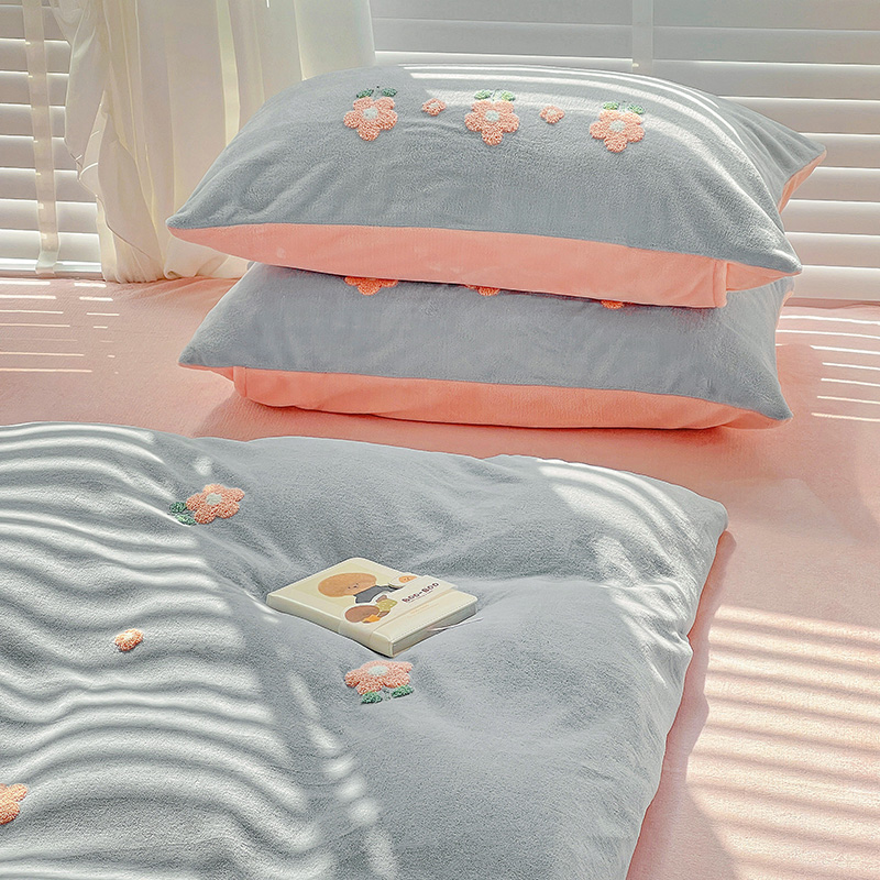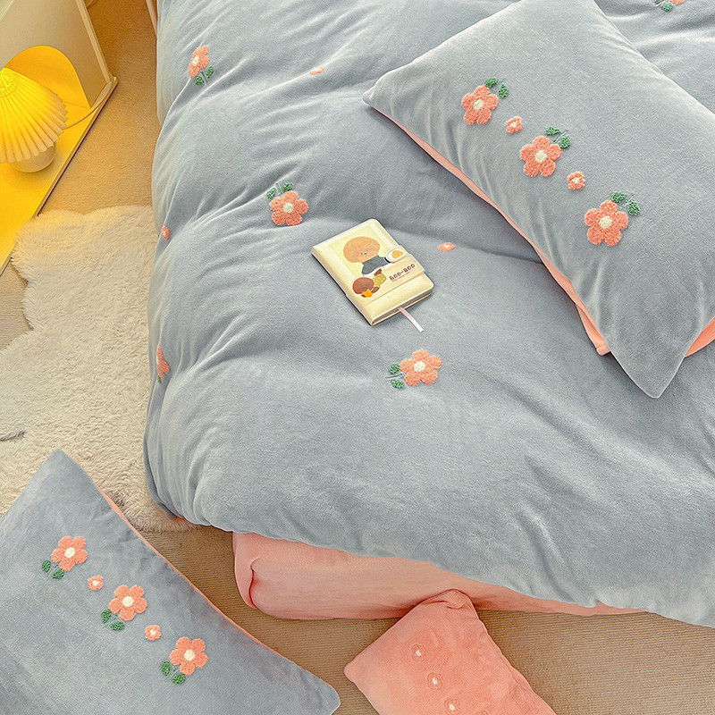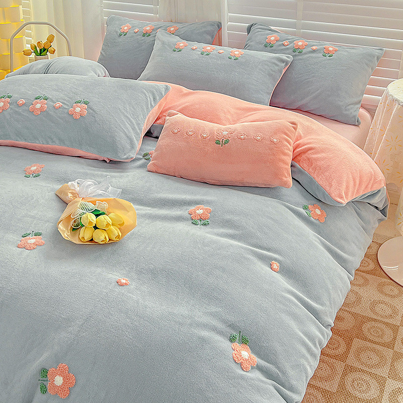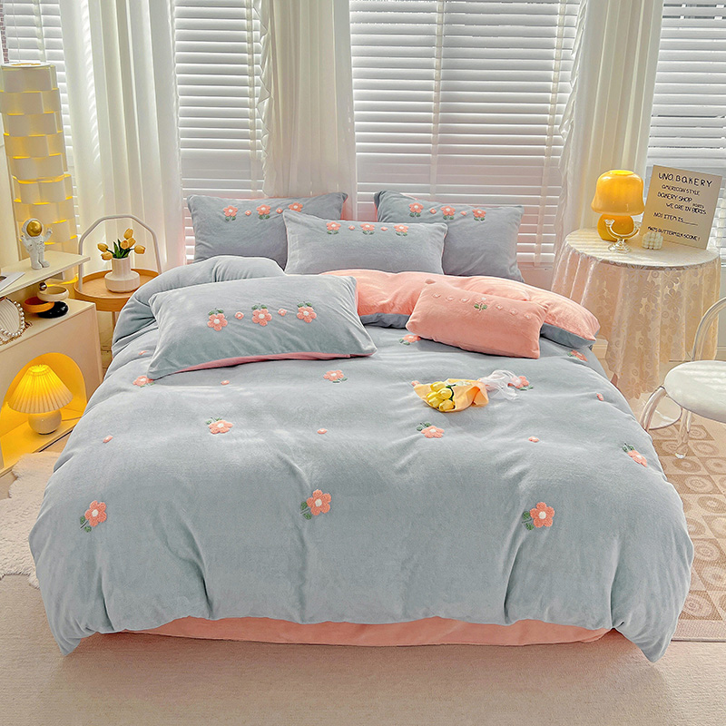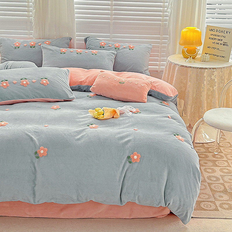 商品名称:寐居2022新款毛巾绣牛奶绒单被套 朵朵花开-蓝粉