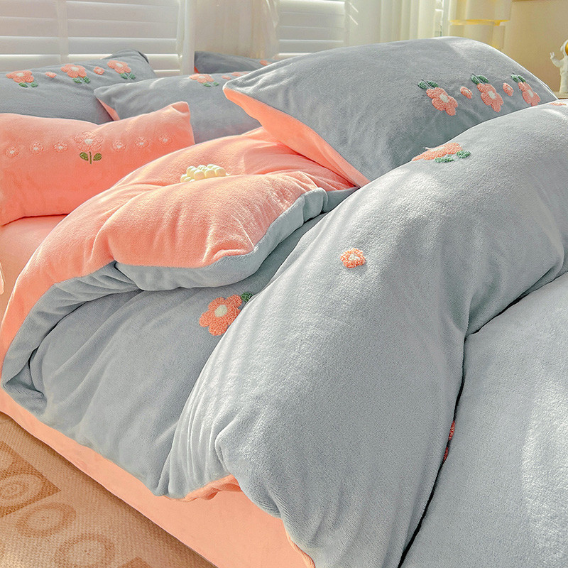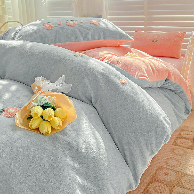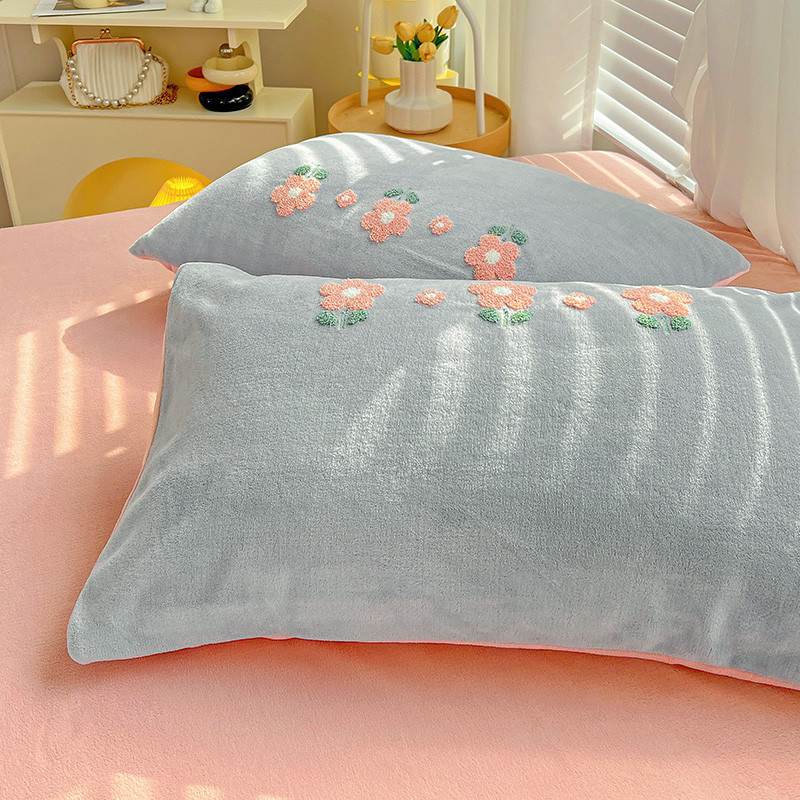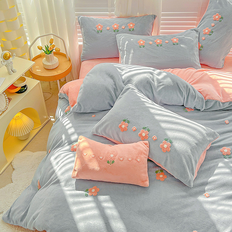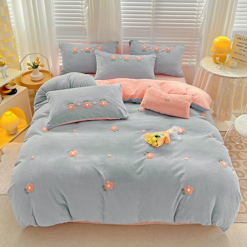 商品名称:寐居2022新款毛巾绣牛奶绒单被套 朵朵花开-蓝粉