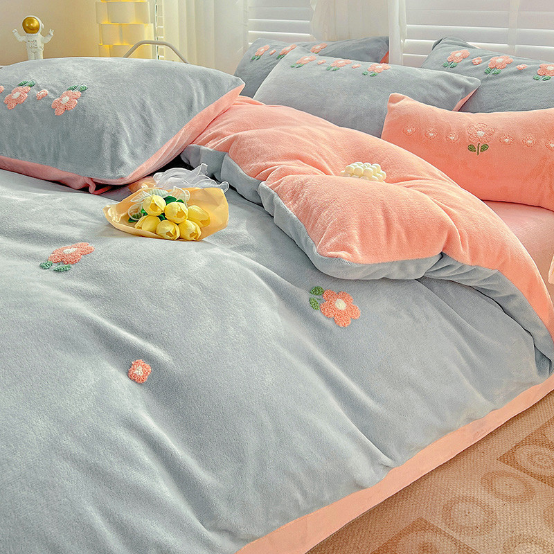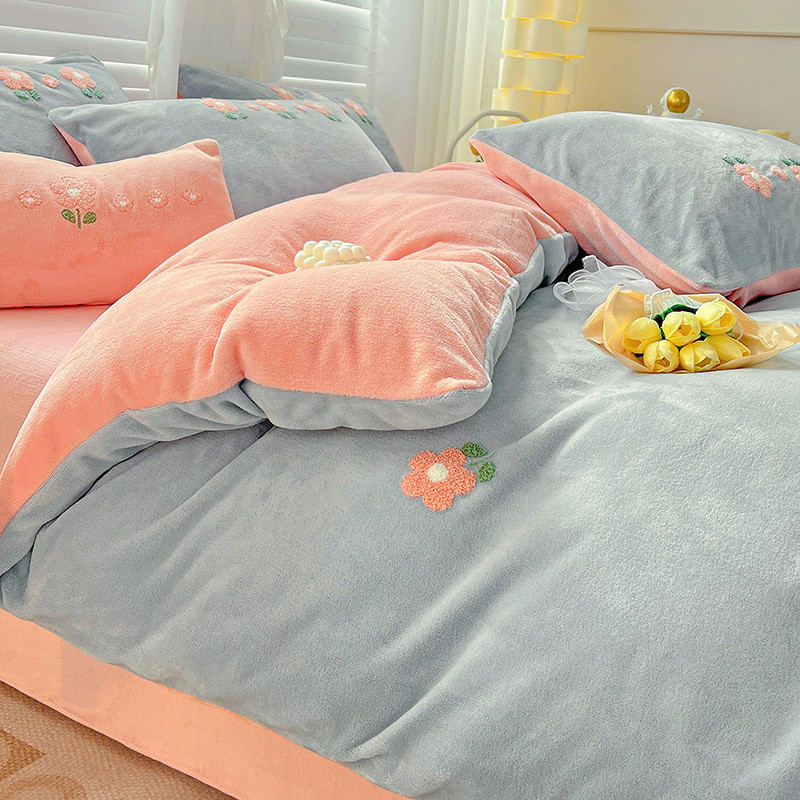 (总)寐居家纺 2025新款贴布绣高克重牛奶绒四件套,安吉拉喵,查理狗,粉糯kitty,皮皮布布