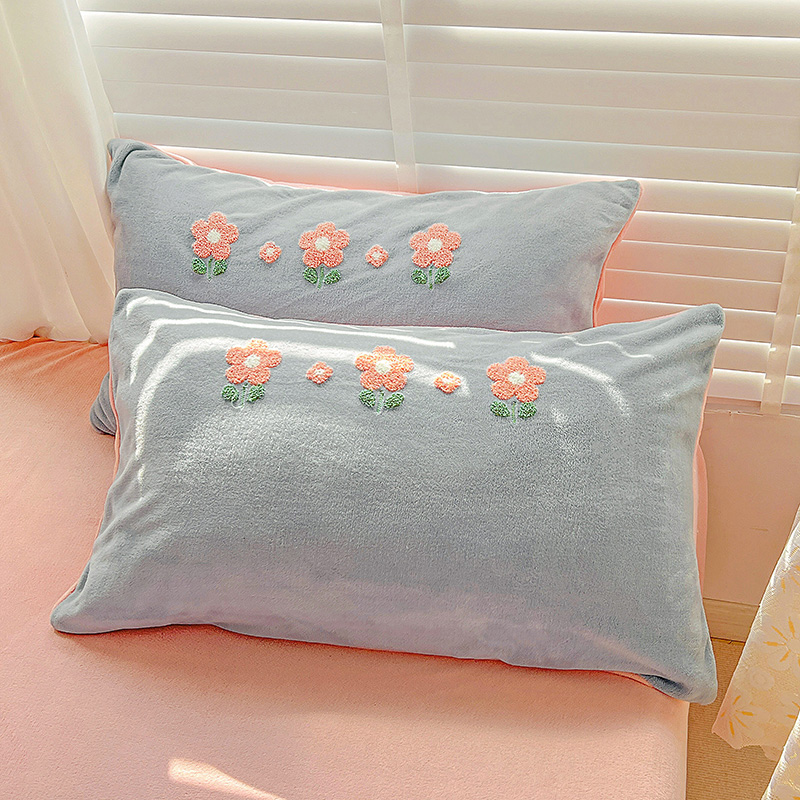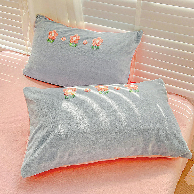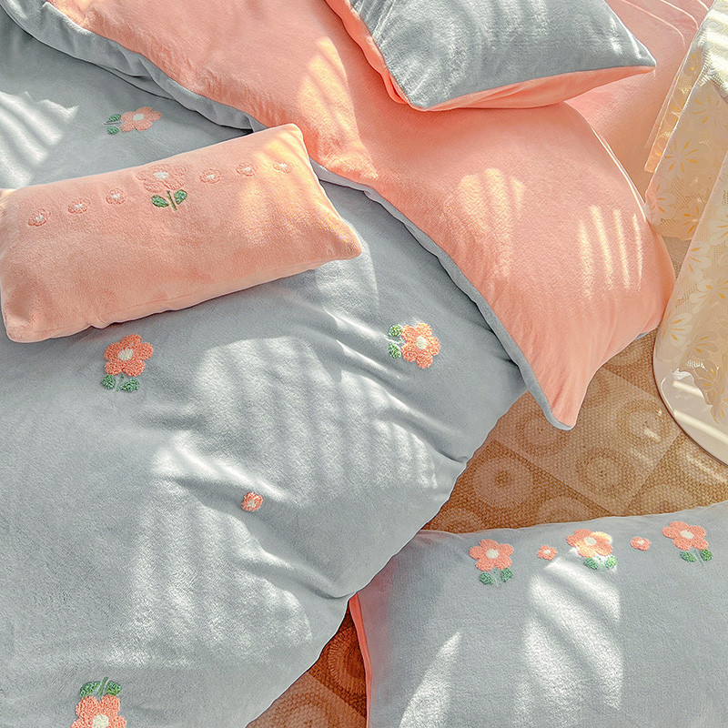 寐居2022新款毛巾绣牛奶绒单被套 朵朵花开-蓝粉