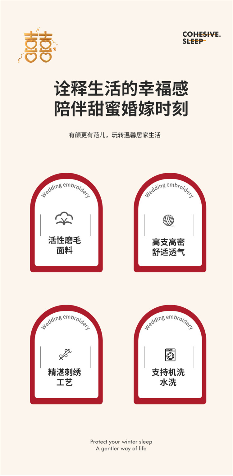 (总)千希家纺 2025新款220克牛奶绒贴布绣婚庆套件(提供买家秀),家有喜事,贴布款-喜樂,吾家有喜