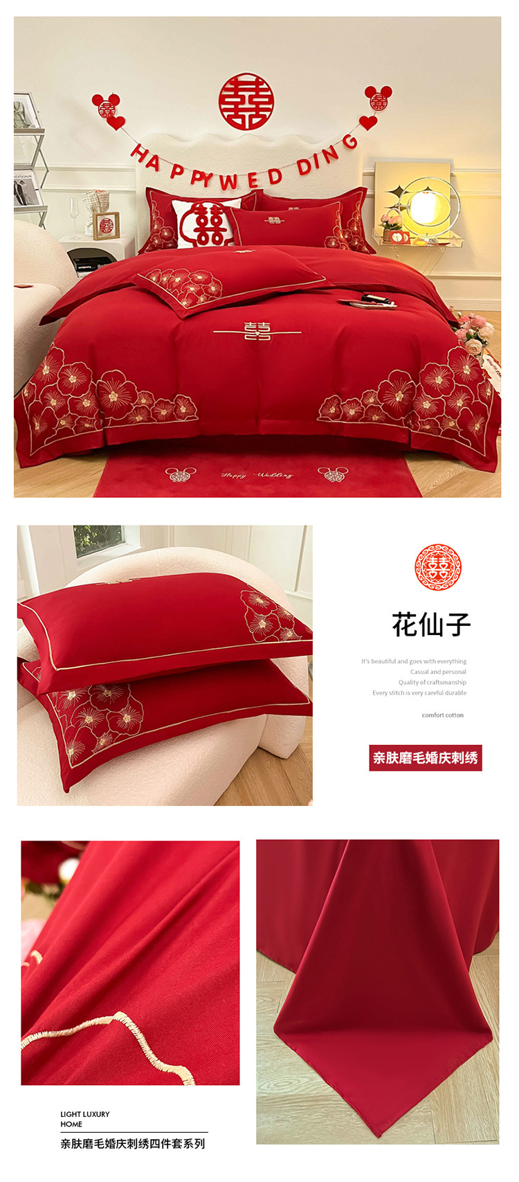 (总)千希家纺 2025新款婚庆系列高克重工艺款提花布刺绣四件套,浪漫婚礼,新婚大喜