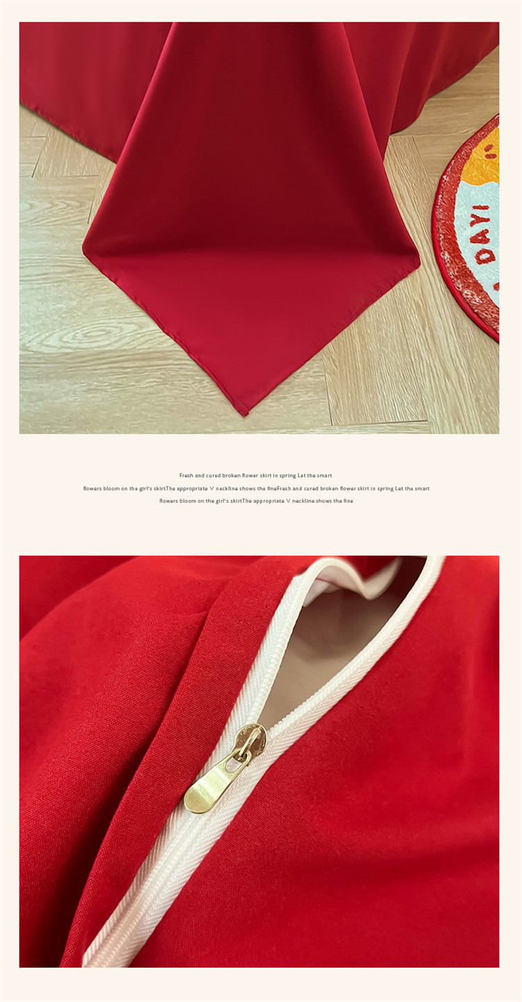 商品名称:千希家纺家纺 2022新款婚庆磨毛刺绣大红色结婚四件套 花仙子