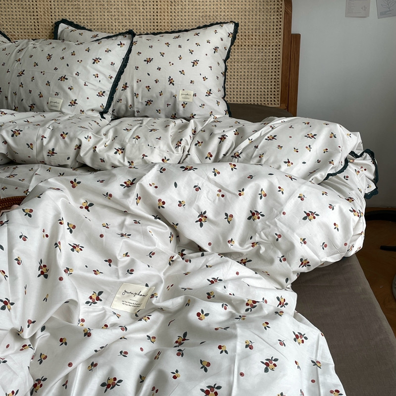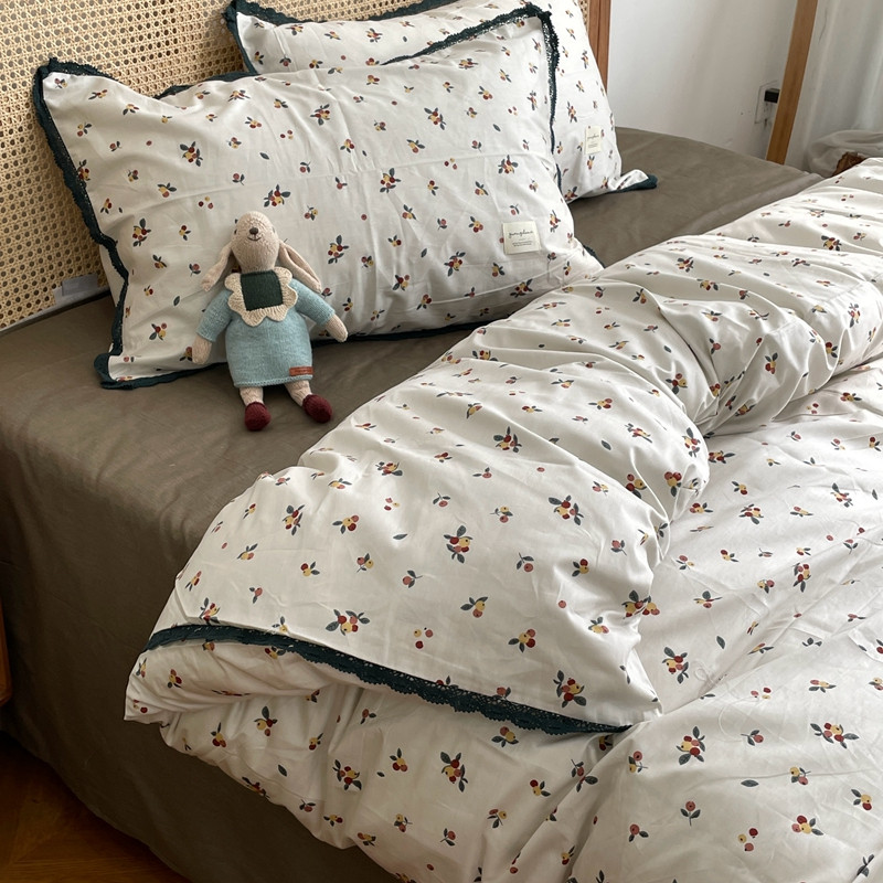 源启生活 2022新款全棉法式田园风花边款四件套 沙棘