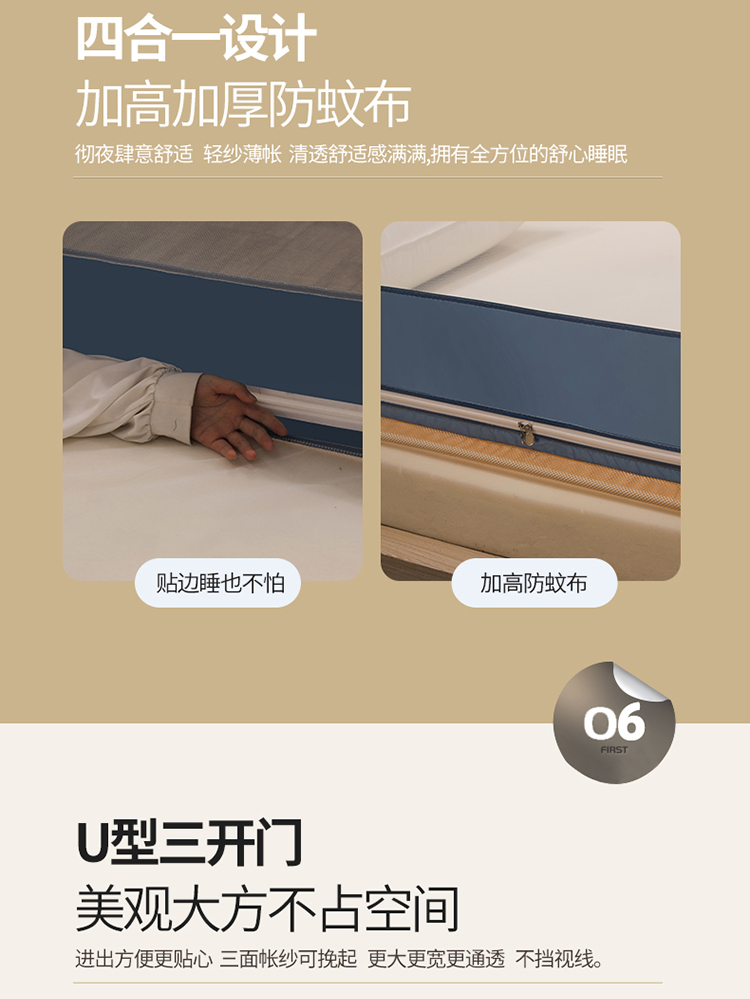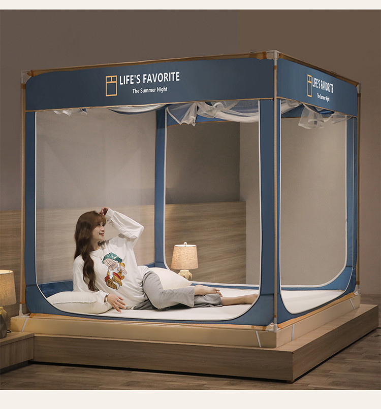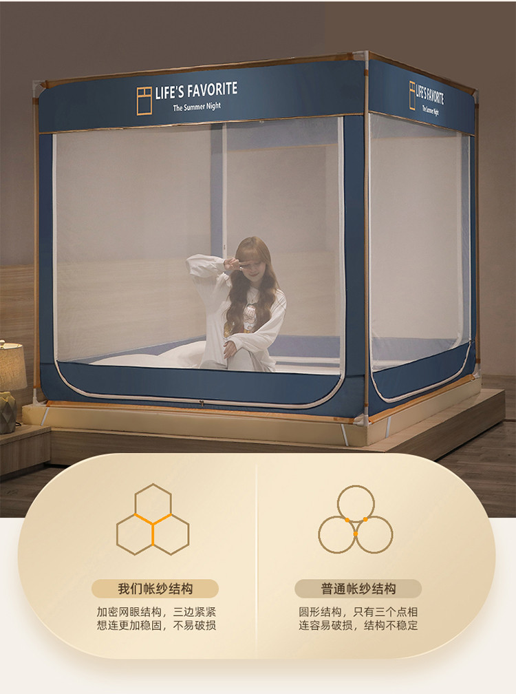 (总)飞轮海蚊帐 2023新款U型三开门遮光坐床蚊帐-Z-75,黛蓝,奶油黄,香槟