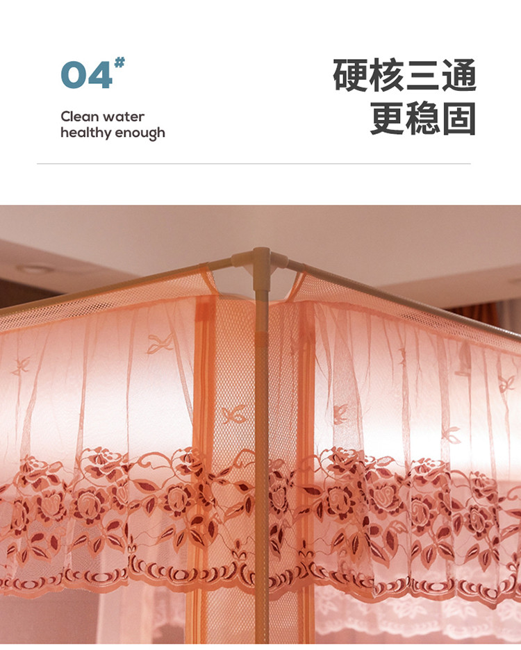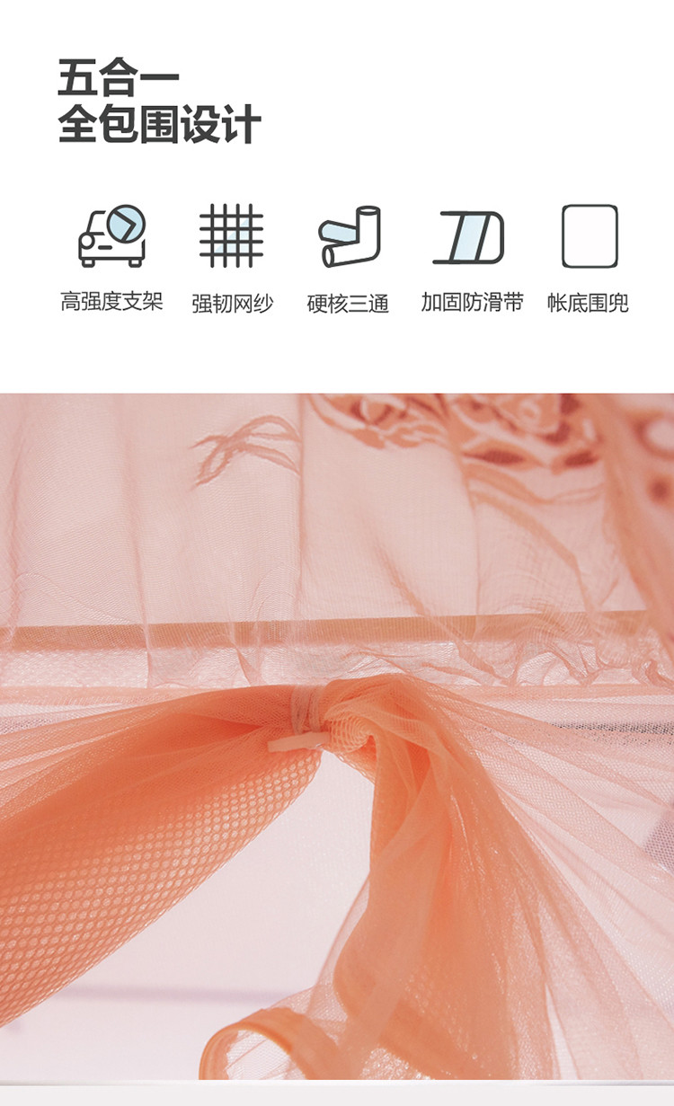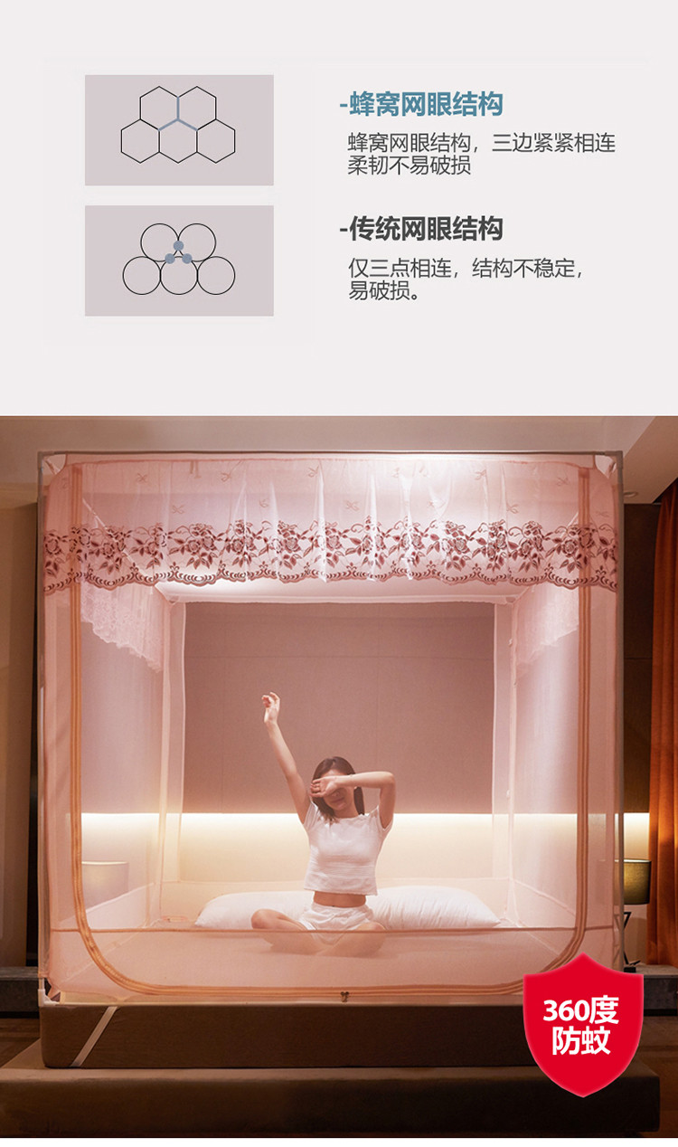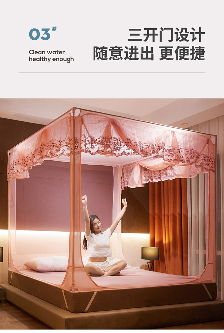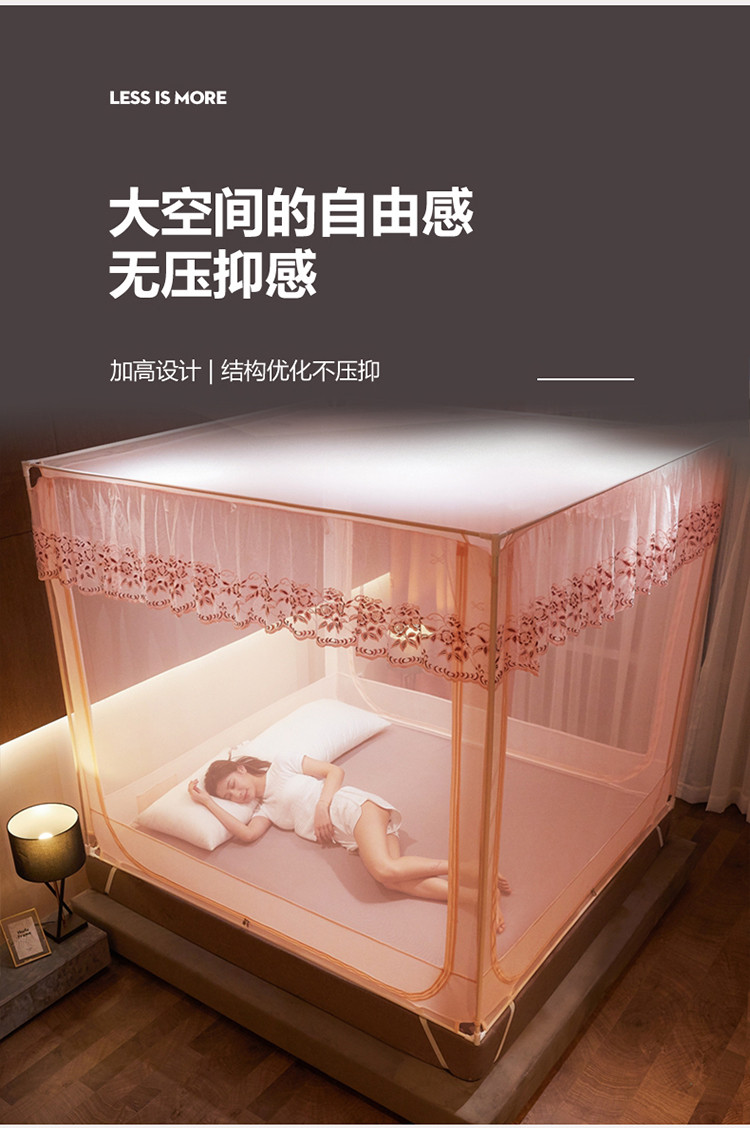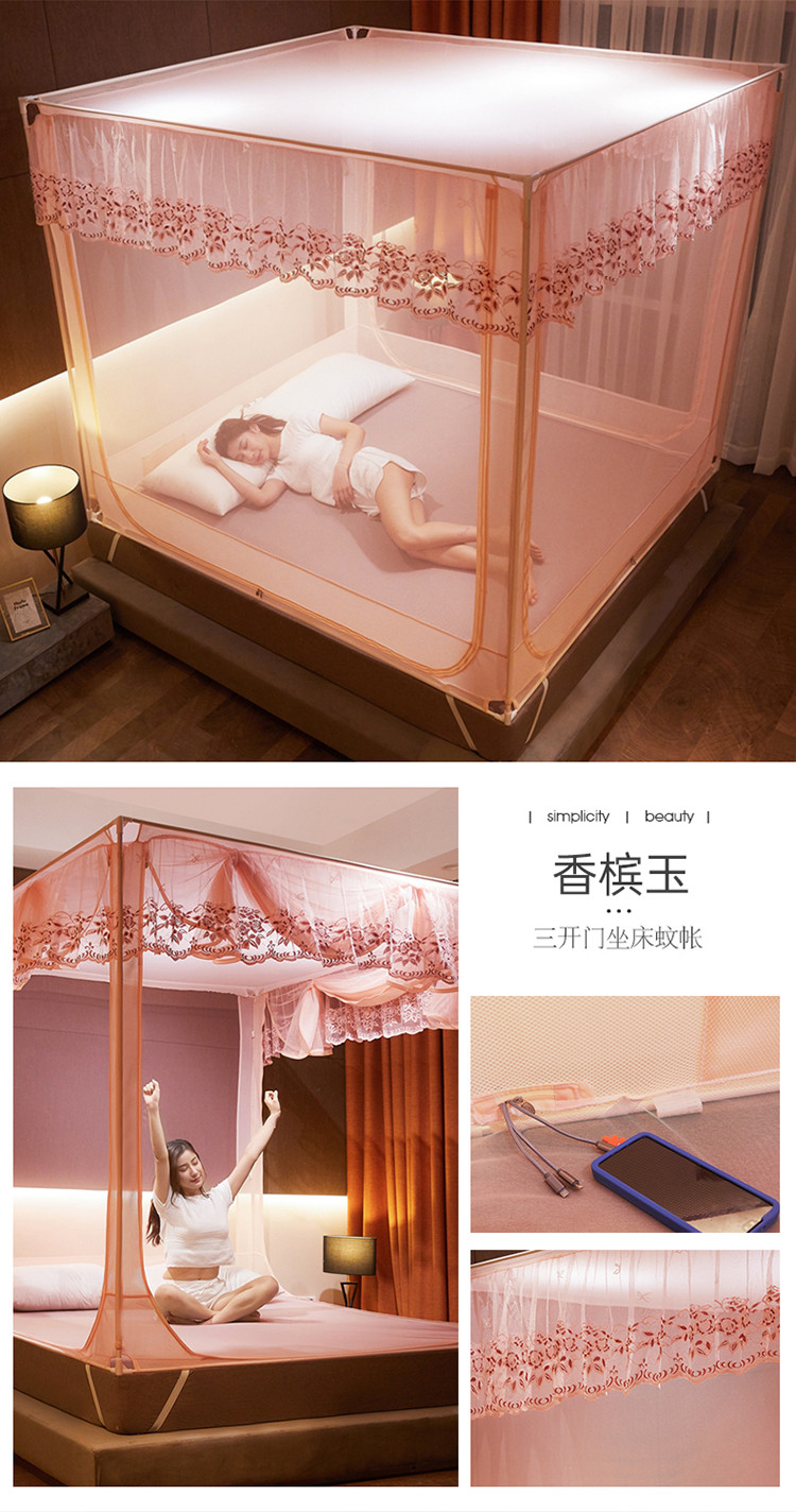 商品名称:飞轮海 2023新款大空间三开门方顶蚊帐-Z78 海棠-香槟玉