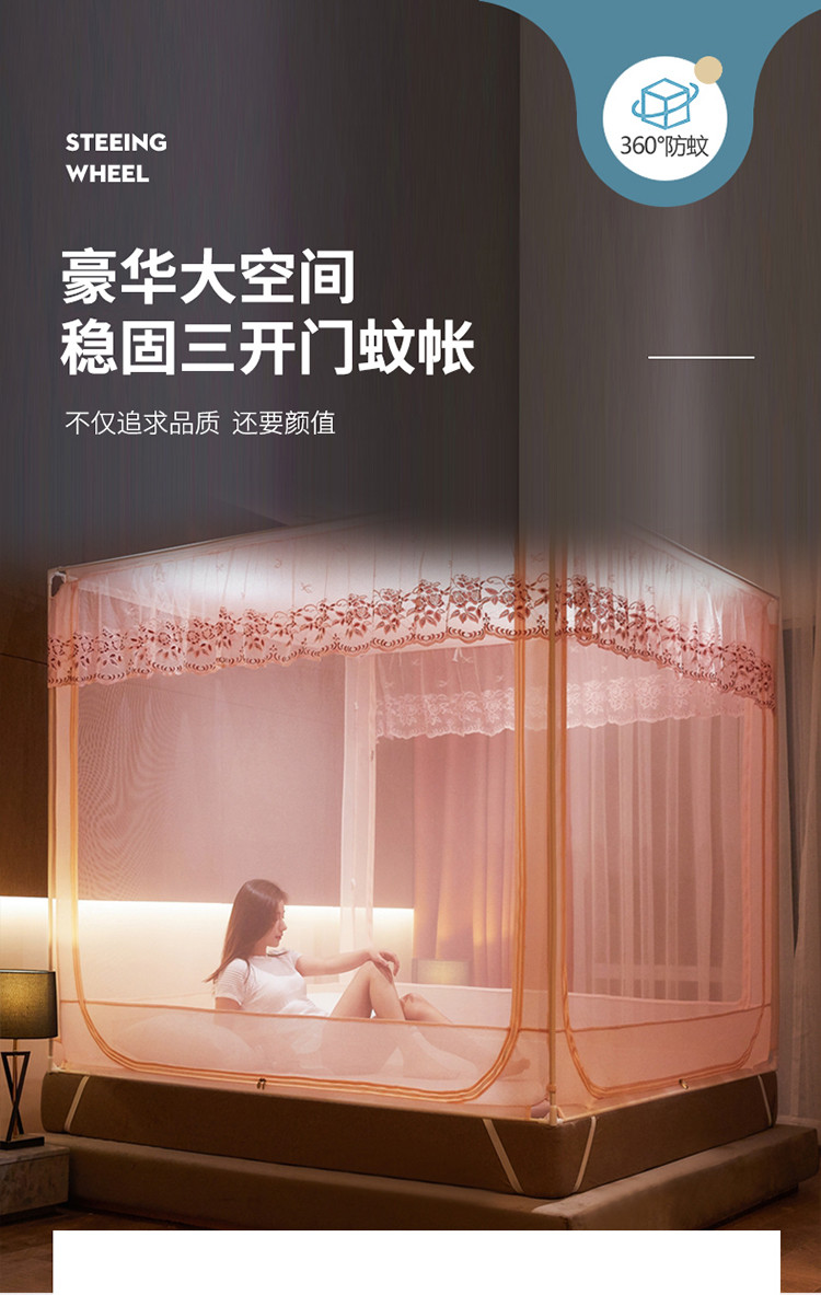 飞轮海 2023新款大空间三开门方顶蚊帐-Z78 海棠-香槟玉
