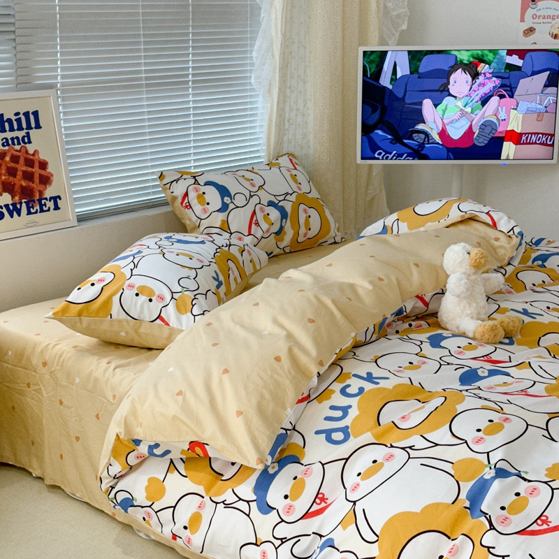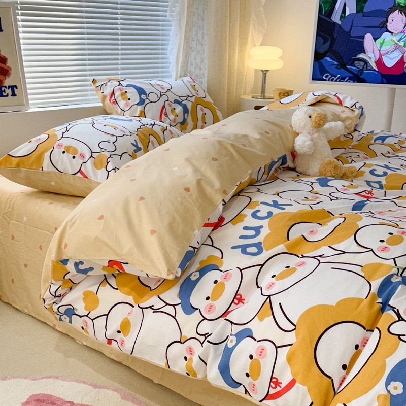 昔可 2023新款全棉卡通系列四件套 黄色鸭鸭