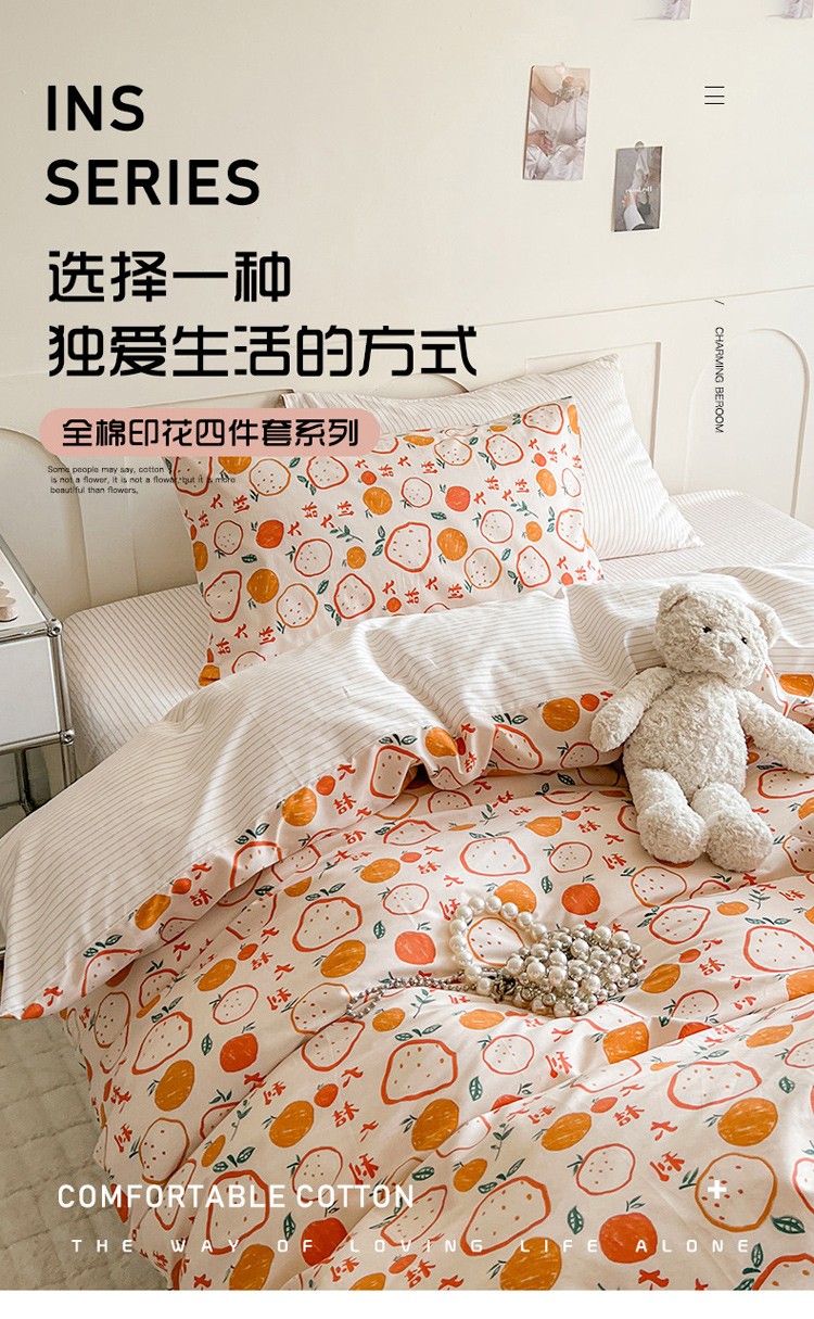 商品名称:希文 2023新款13372全棉印花四件套-恋语系列 大桔大利