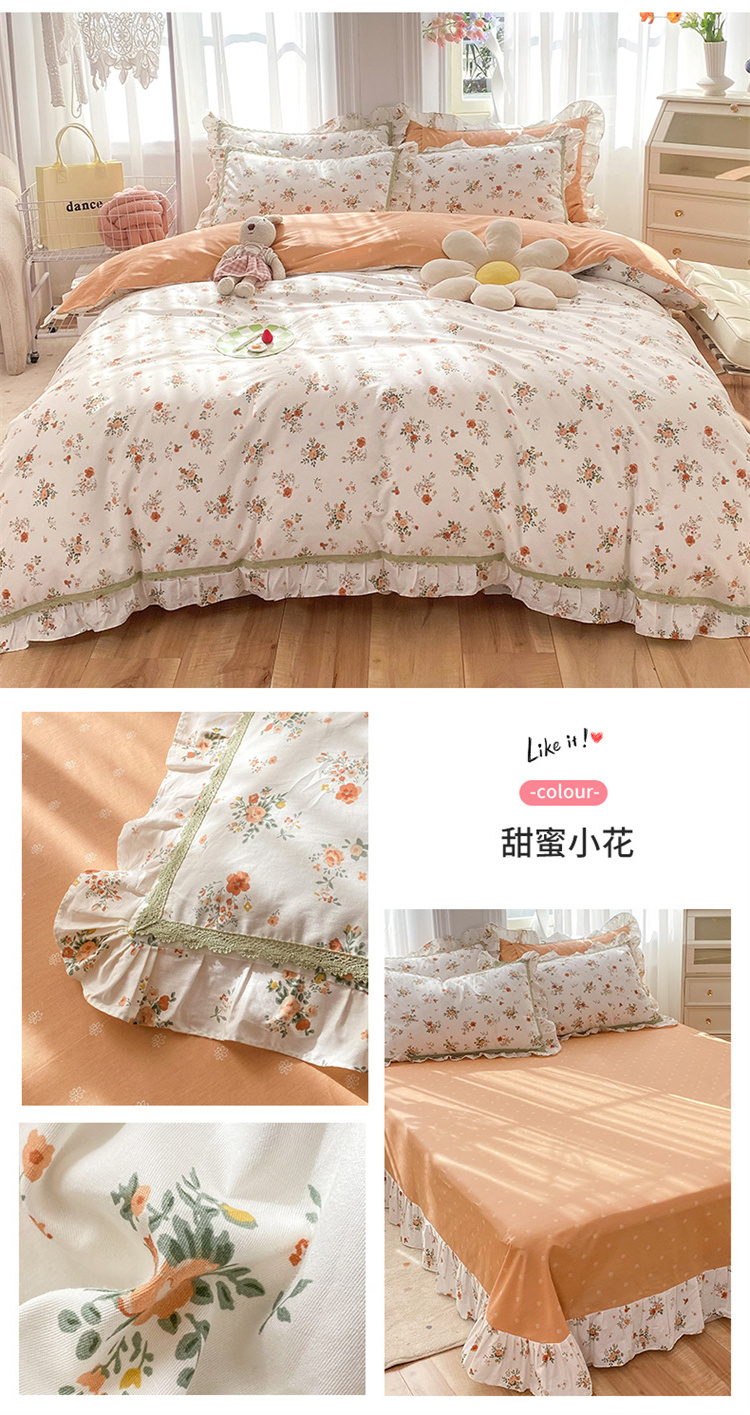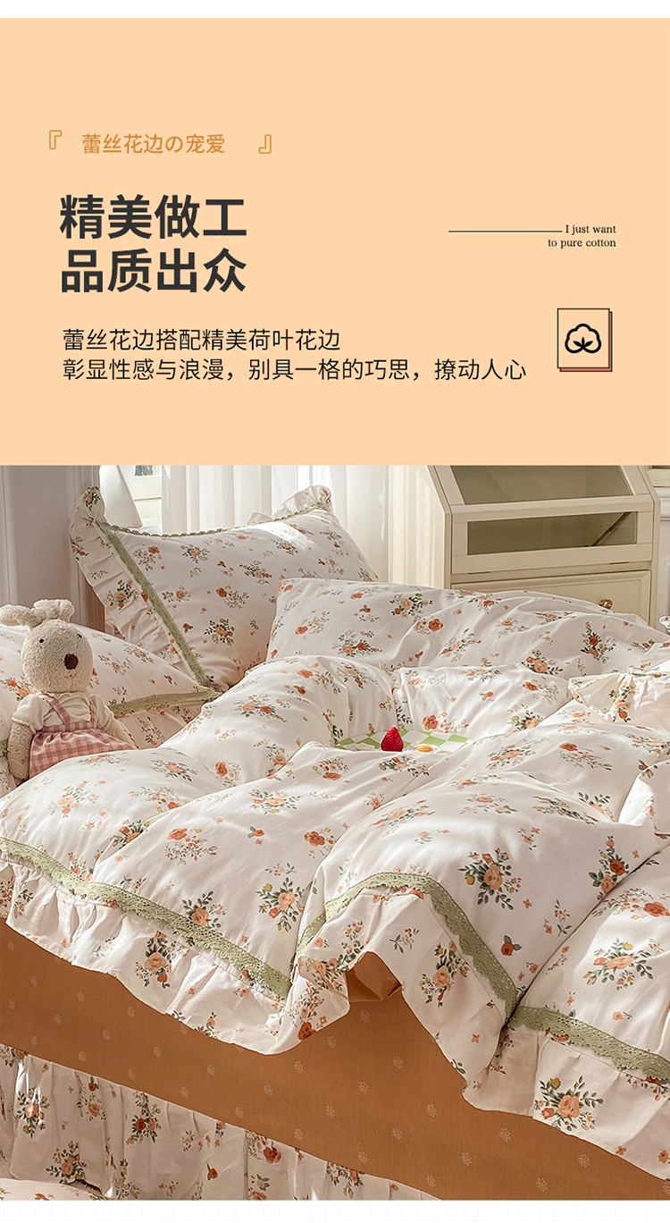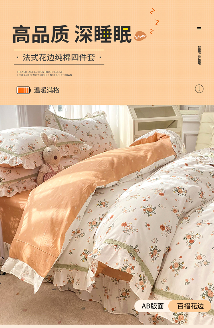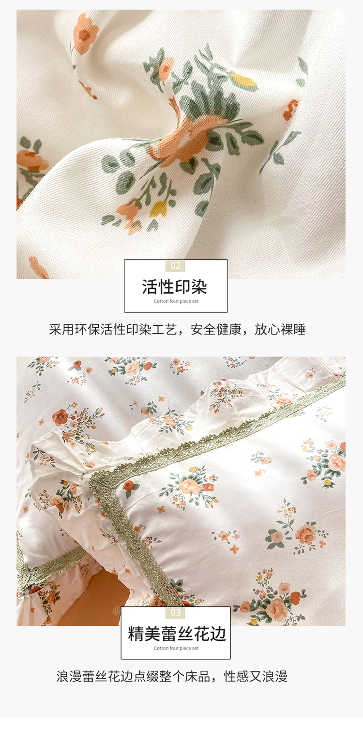 商品名称:艾唯希 2024新款全棉法式花边四件套系列-第三批 甜蜜小花