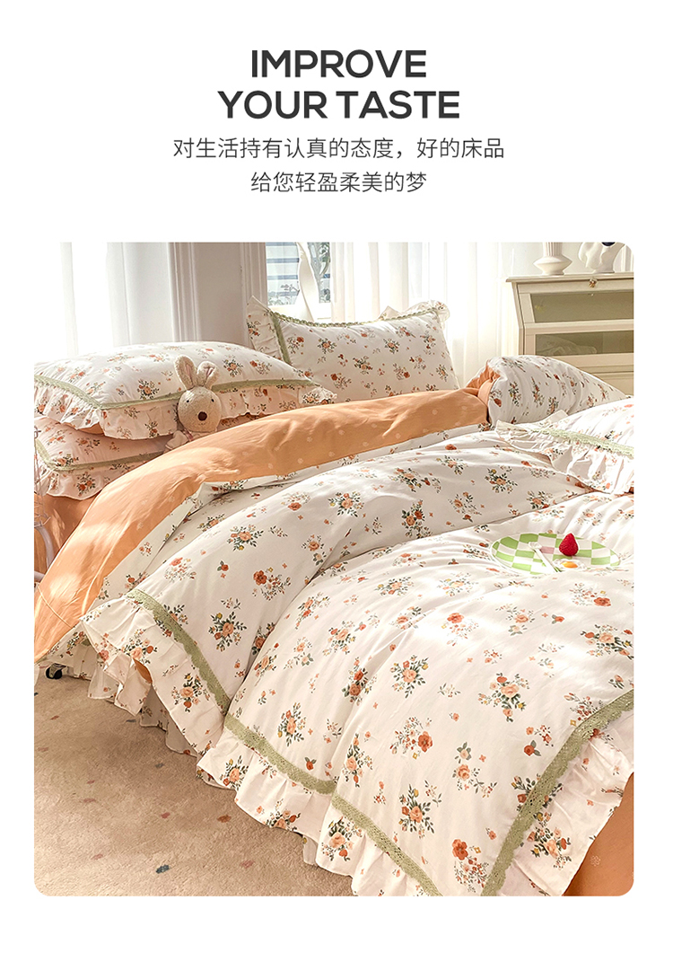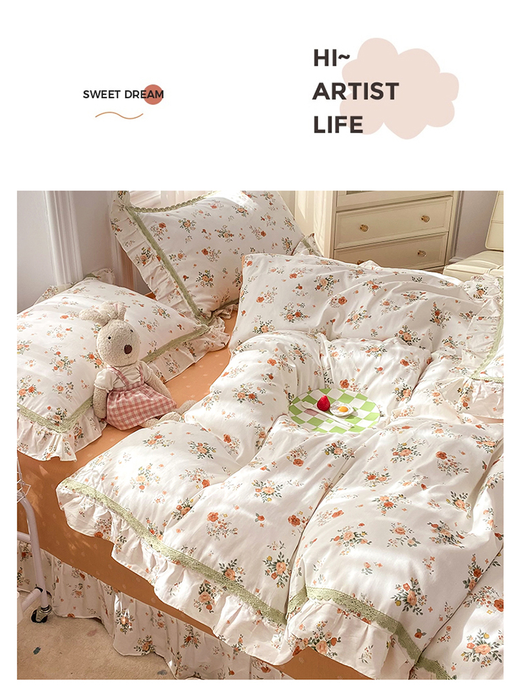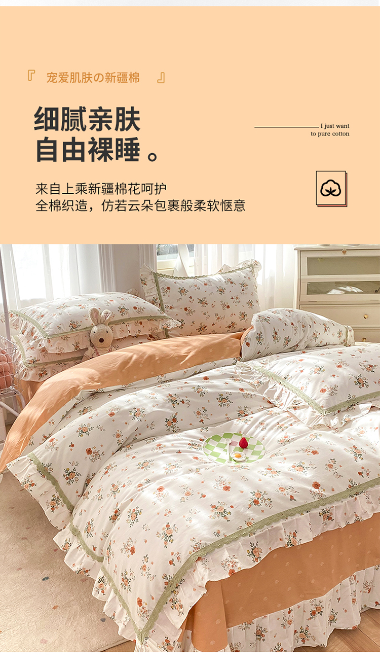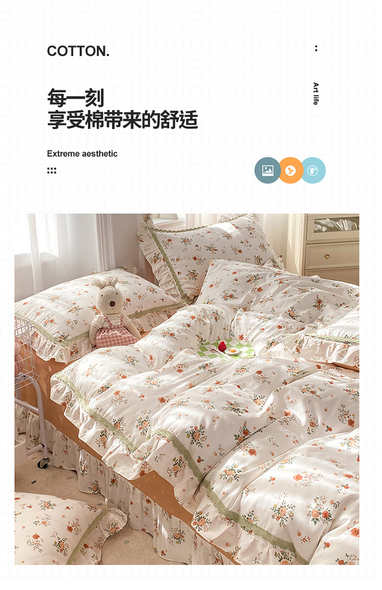 商品名称:艾唯希 2024新款全棉法式花边四件套系列-第三批 甜蜜小花
