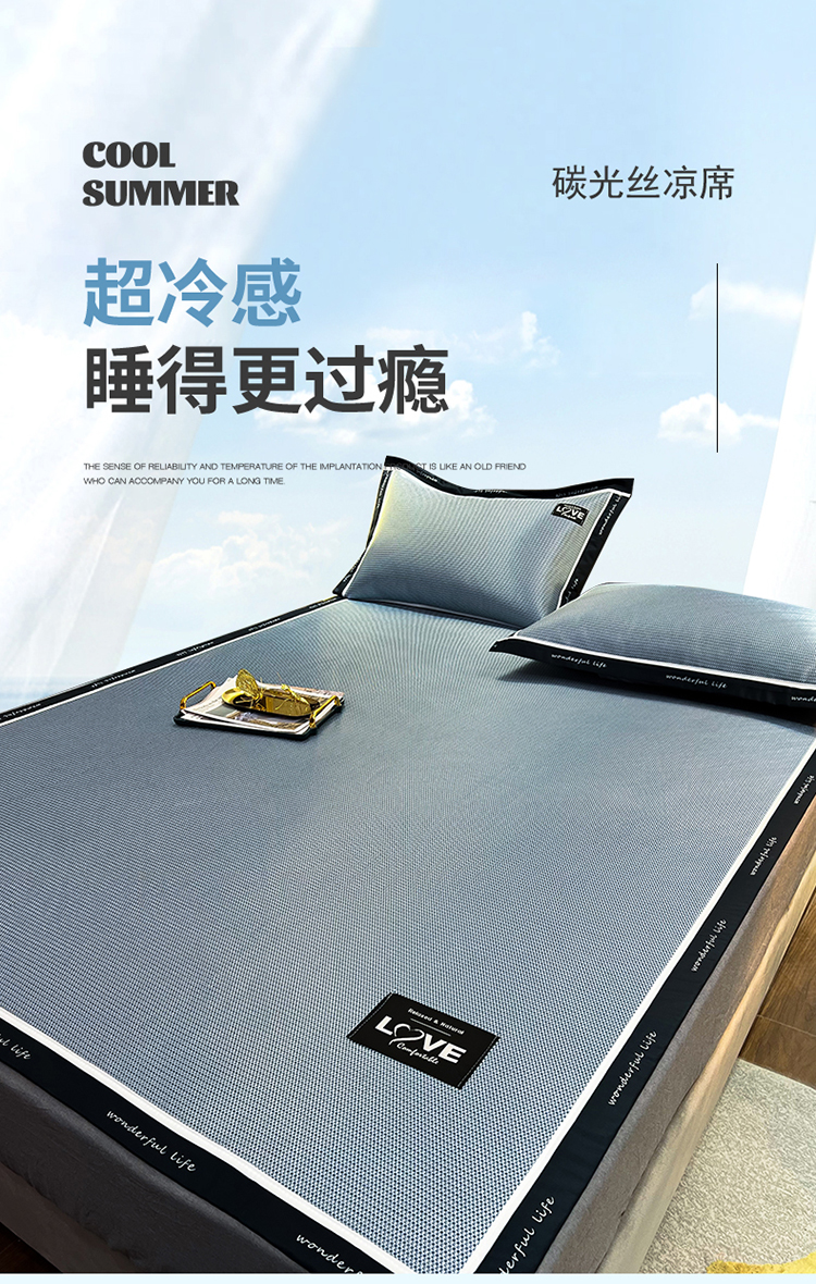 商品名称:宅部落2023新款加厚碳光丝凉席 极光蓝