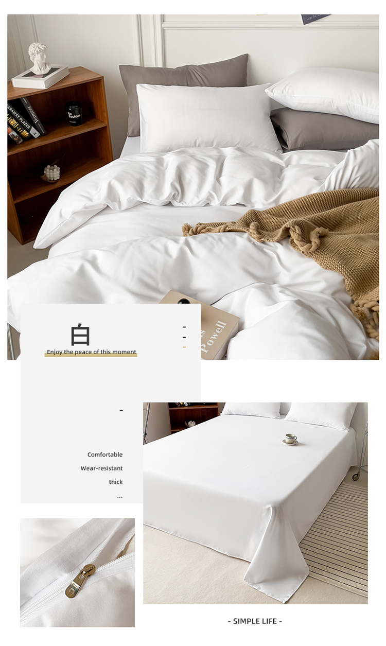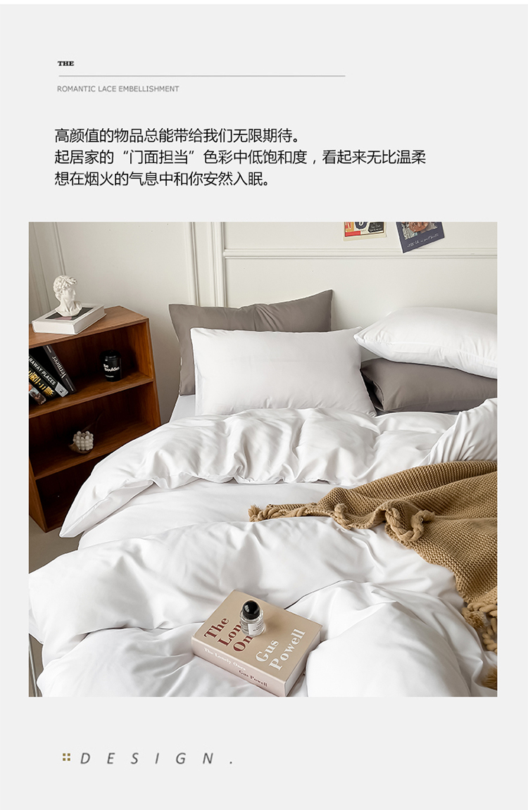 棠颂 2023春夏新款水洗棉亲肤纯色双拼四件套 白