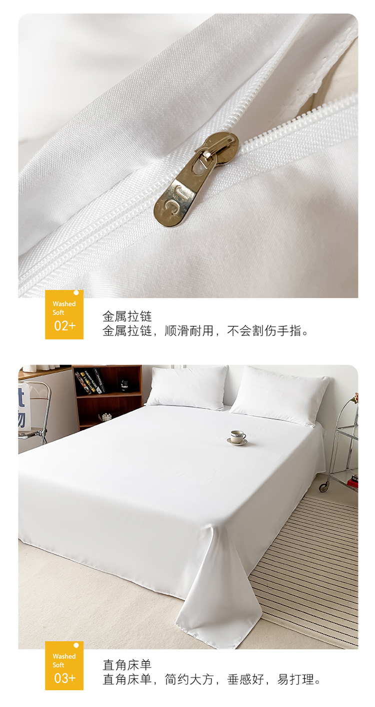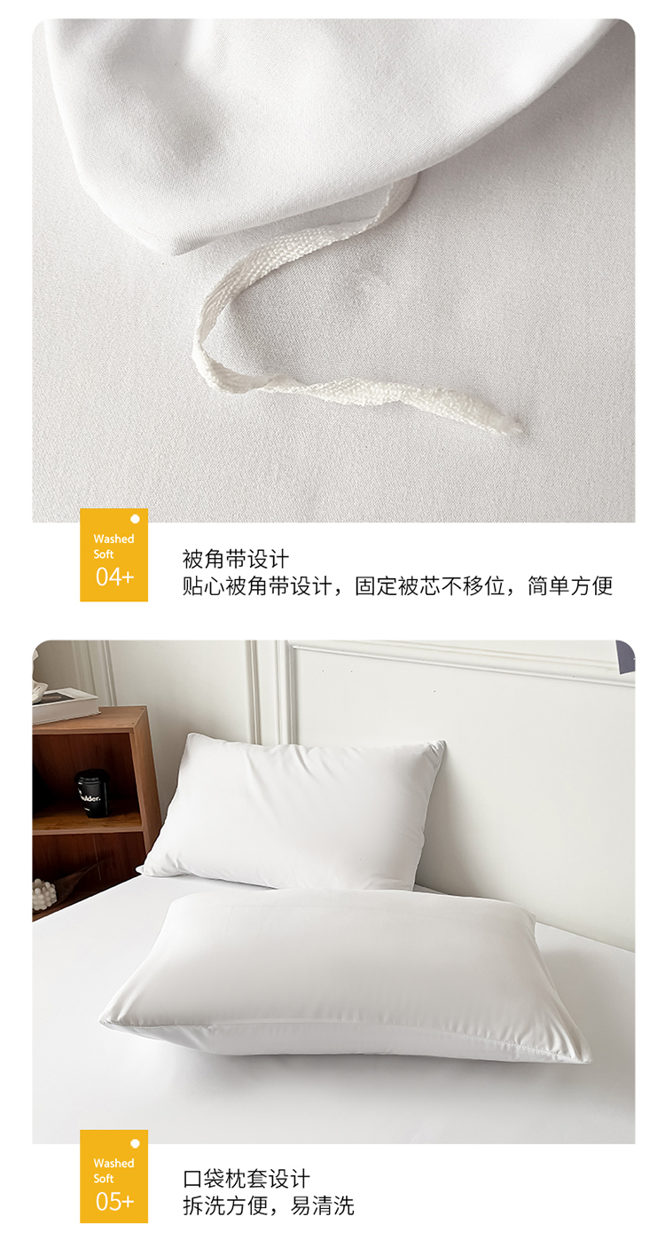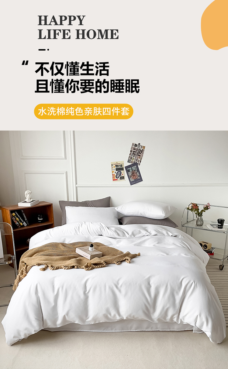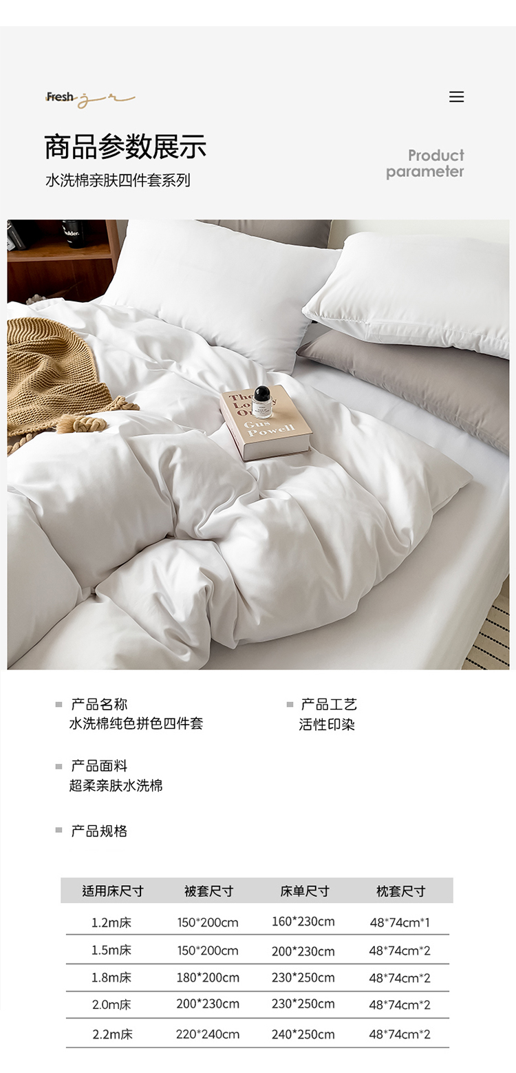 商品名称:棠颂 2023春夏新款水洗棉亲肤纯色双拼四件套 白