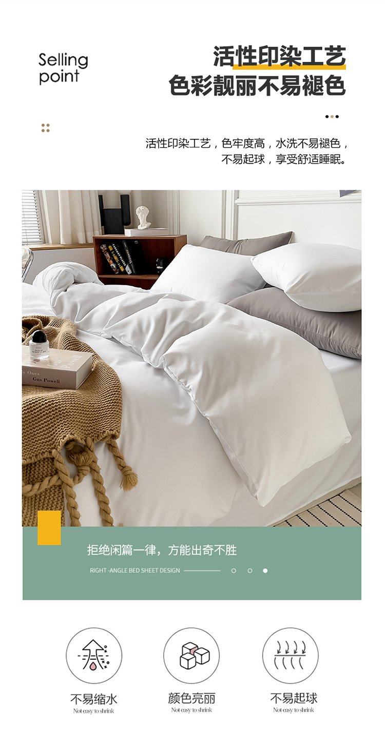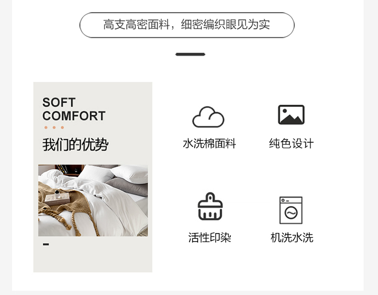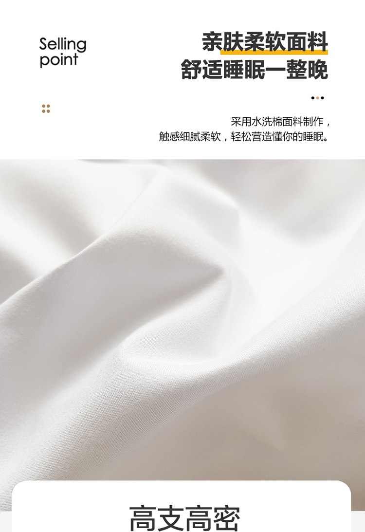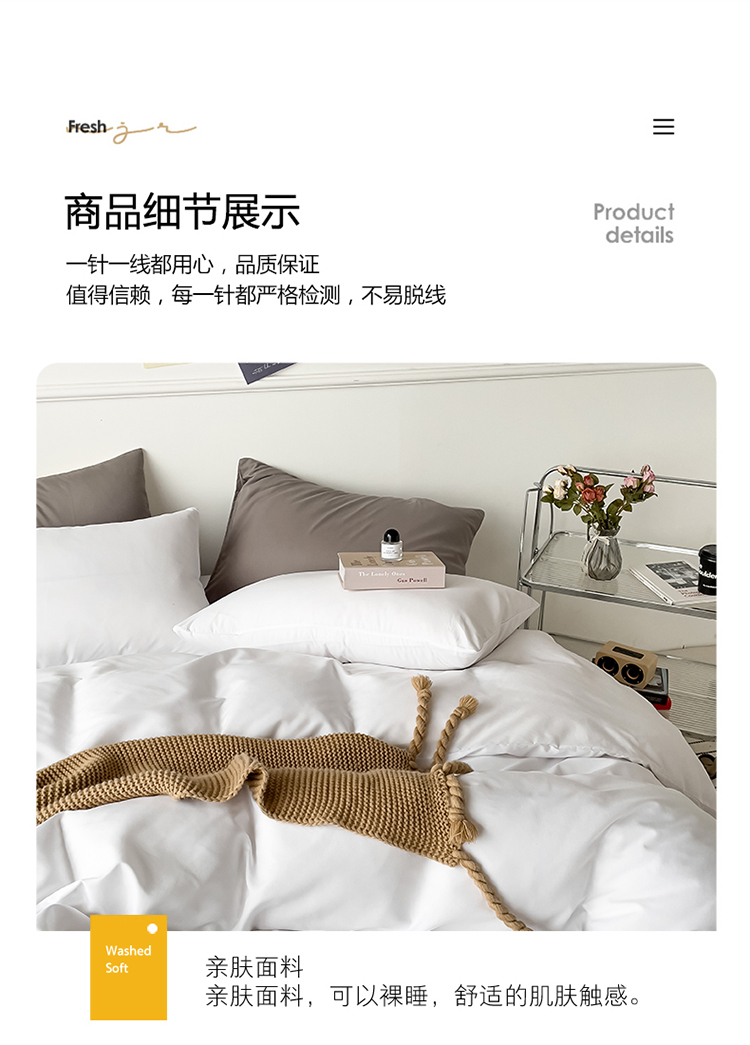 商品名称:棠颂 2023春夏新款水洗棉亲肤纯色双拼四件套 白
