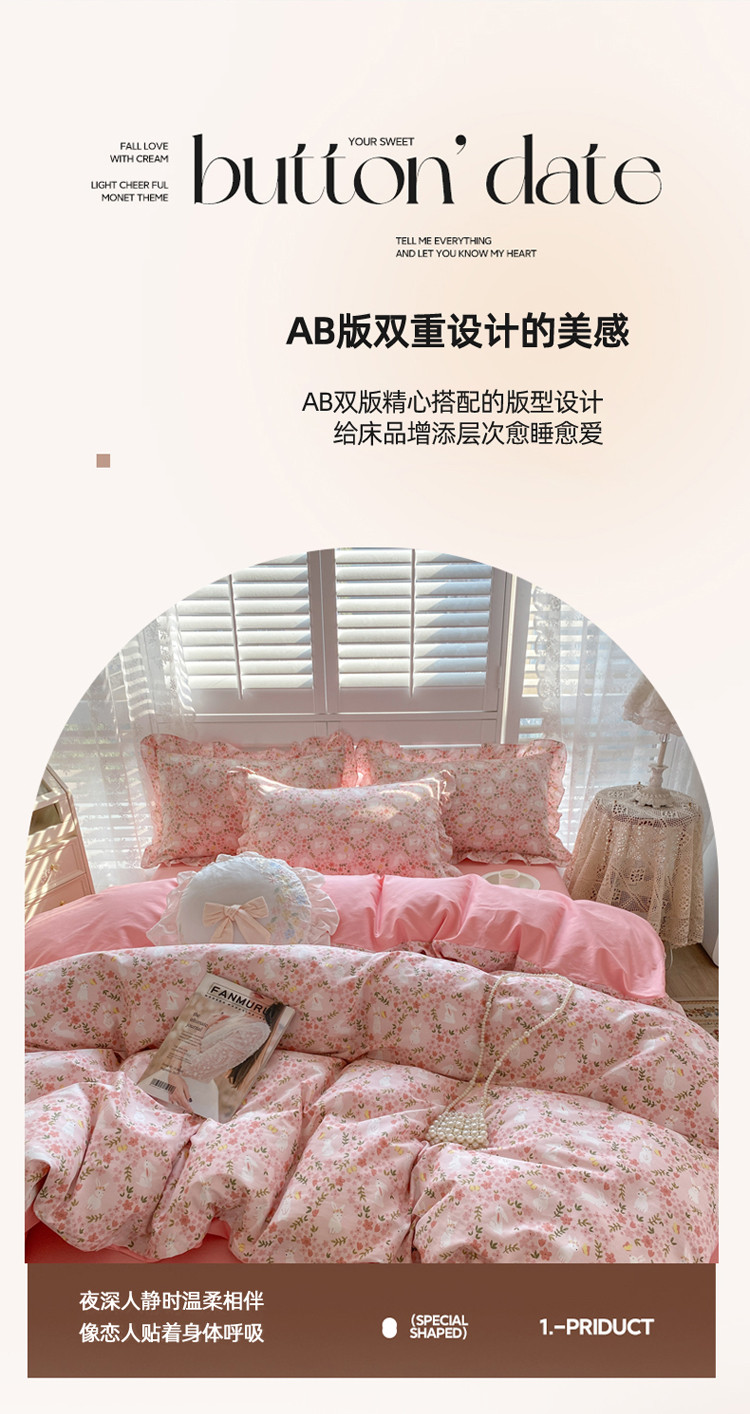 商品名称:潮邦 2025新款13372全棉韩式花卉四件套【含买家秀】 恋语