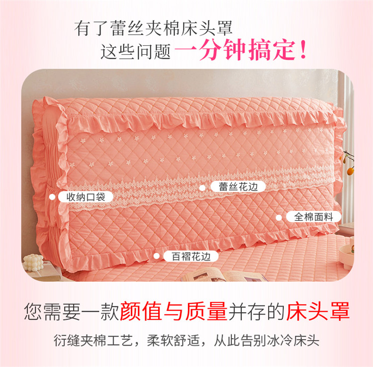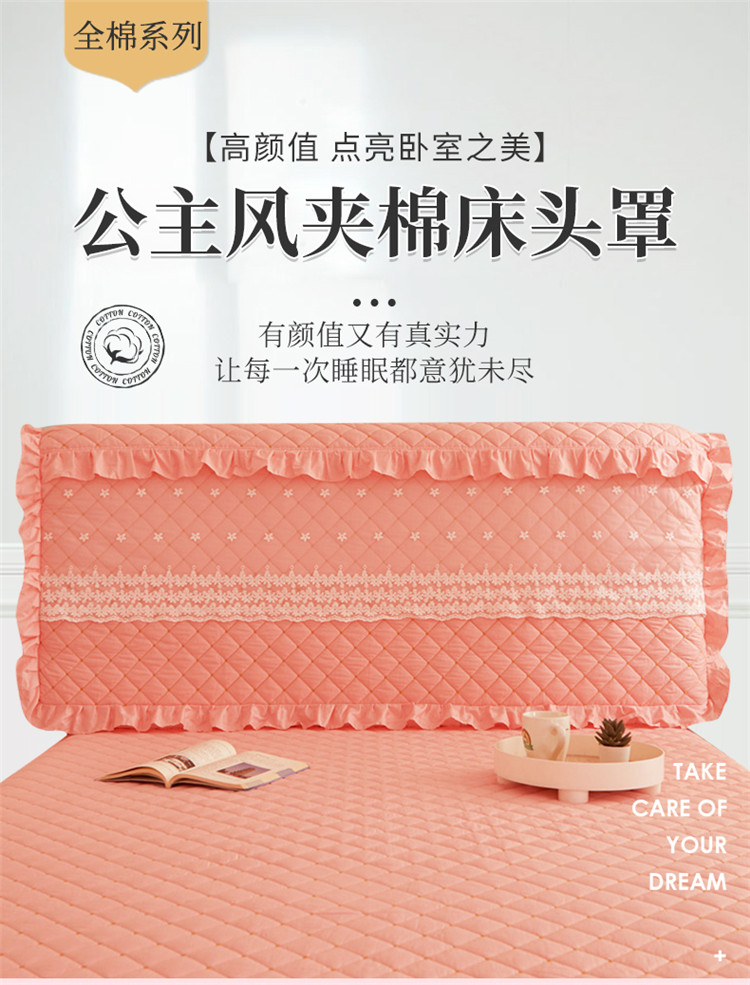 商品名称:十个点 2024新款全棉公主夹棉床头罩 粉色