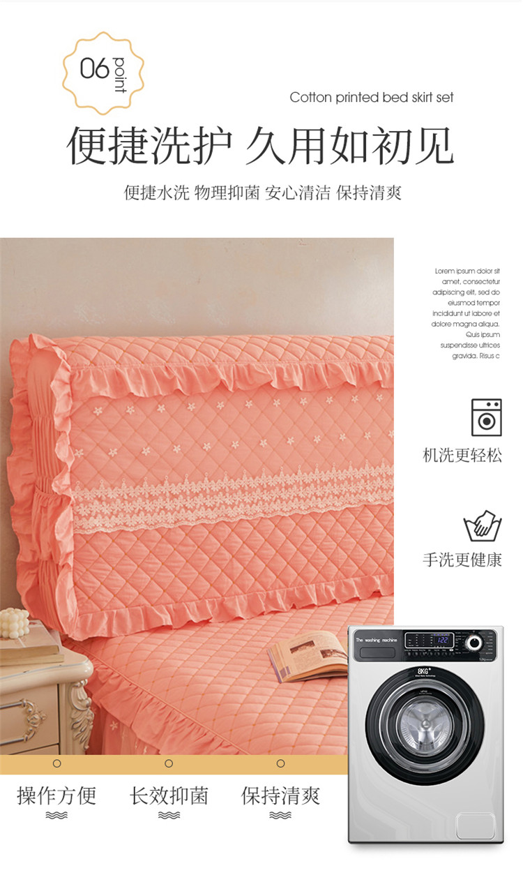 (总)十个点家纺 2025新款千鸟格磨毛绗缝夹棉纯色花边床裙三件套,经典白色,经典兰色,经典浅灰,经典浅驼,经典深灰,经典玉粉