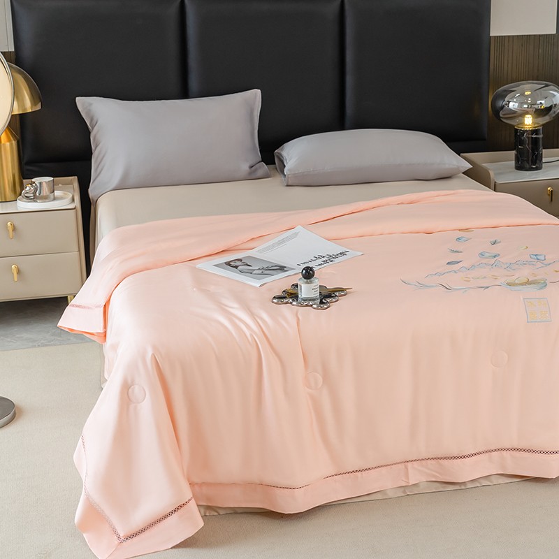 太阳羽2025新款40s冰蚕科技天丝镂空夏被绣花夏凉被空调被清雅冰-玉