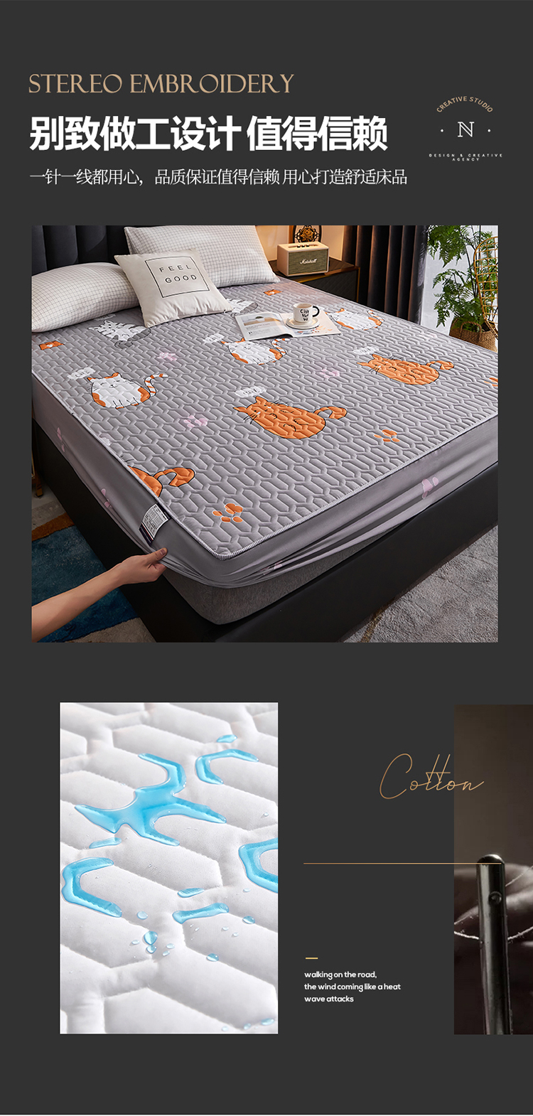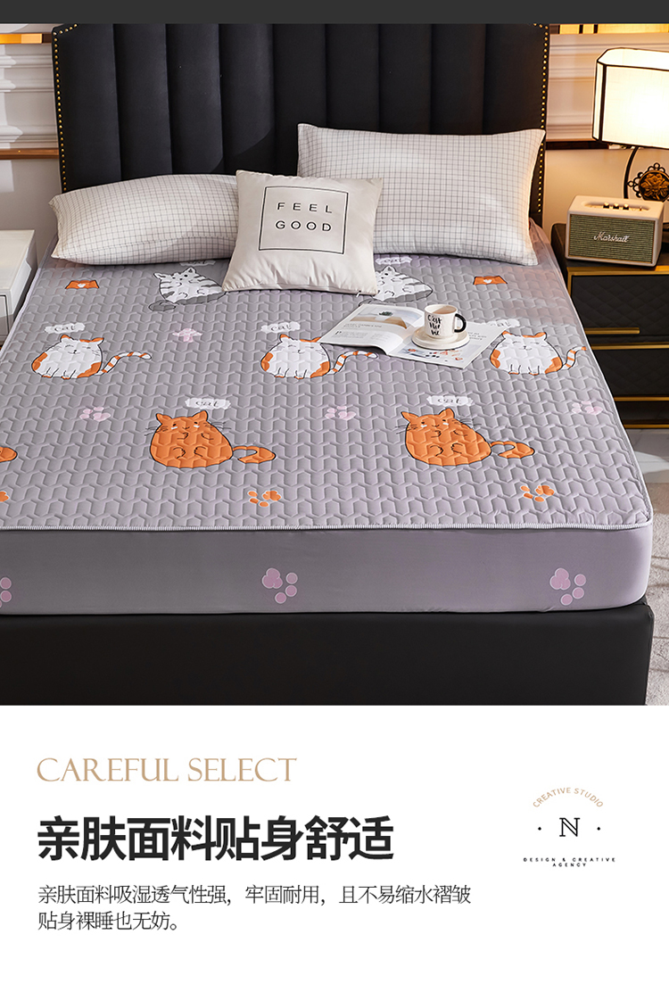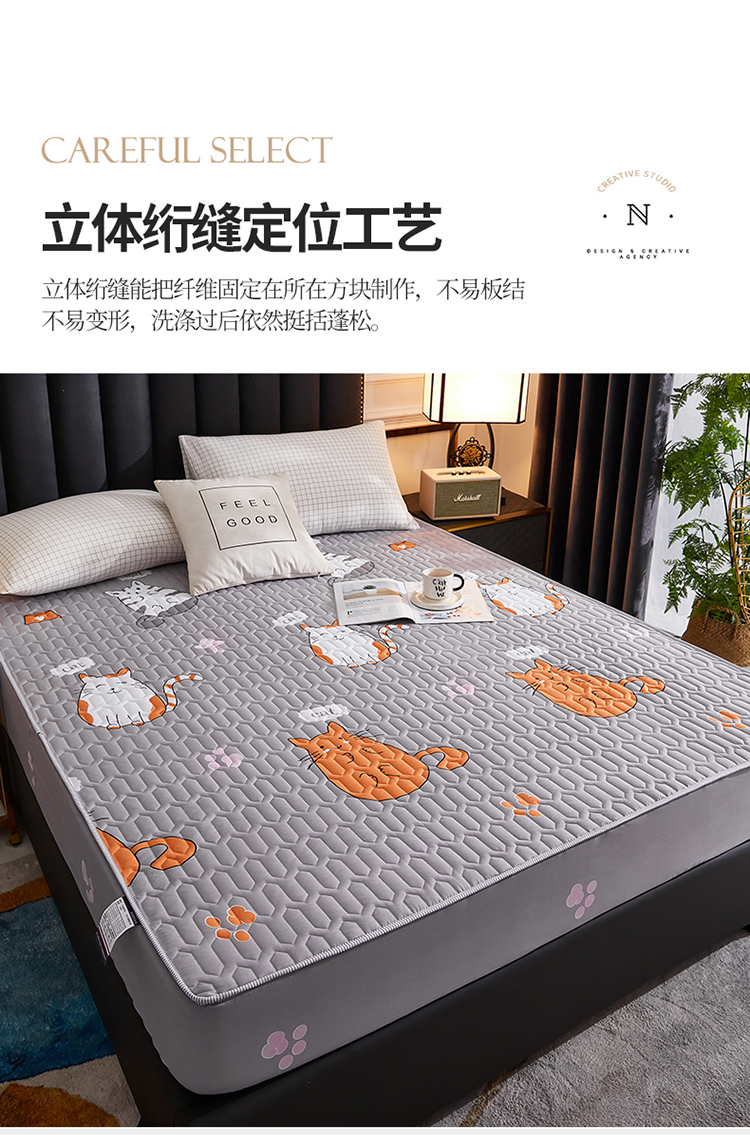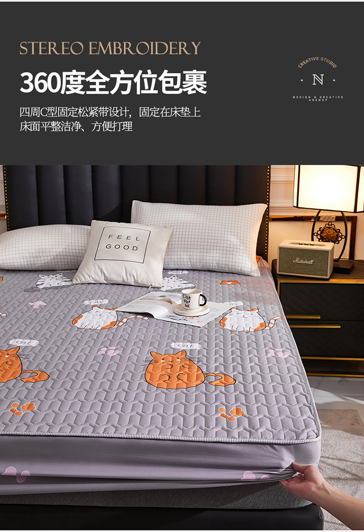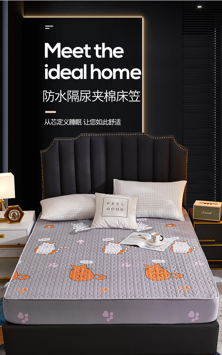• 91家纺网 家纺一手货源 找家纺 苏木年华2023新款抗菌加厚防水隔尿夹棉床笠 快乐猫