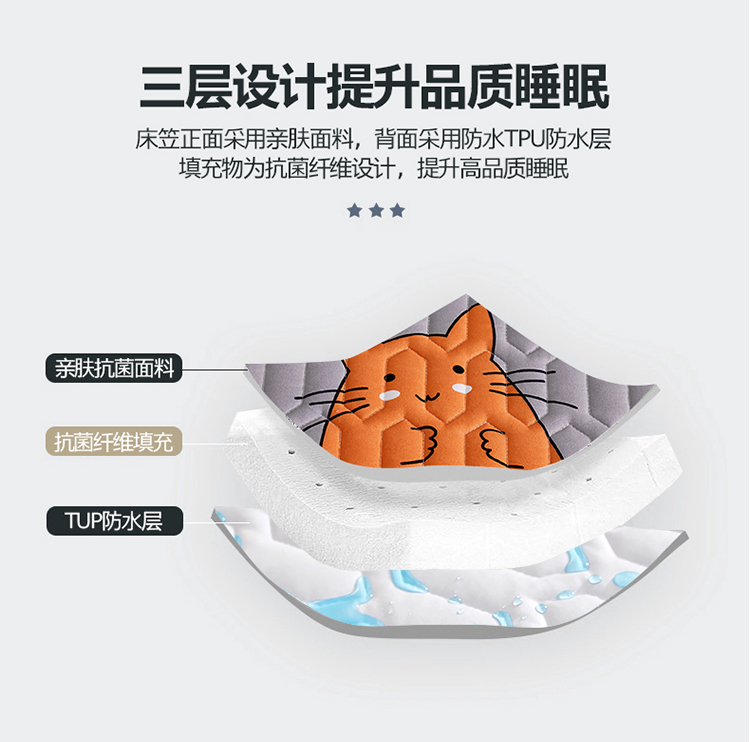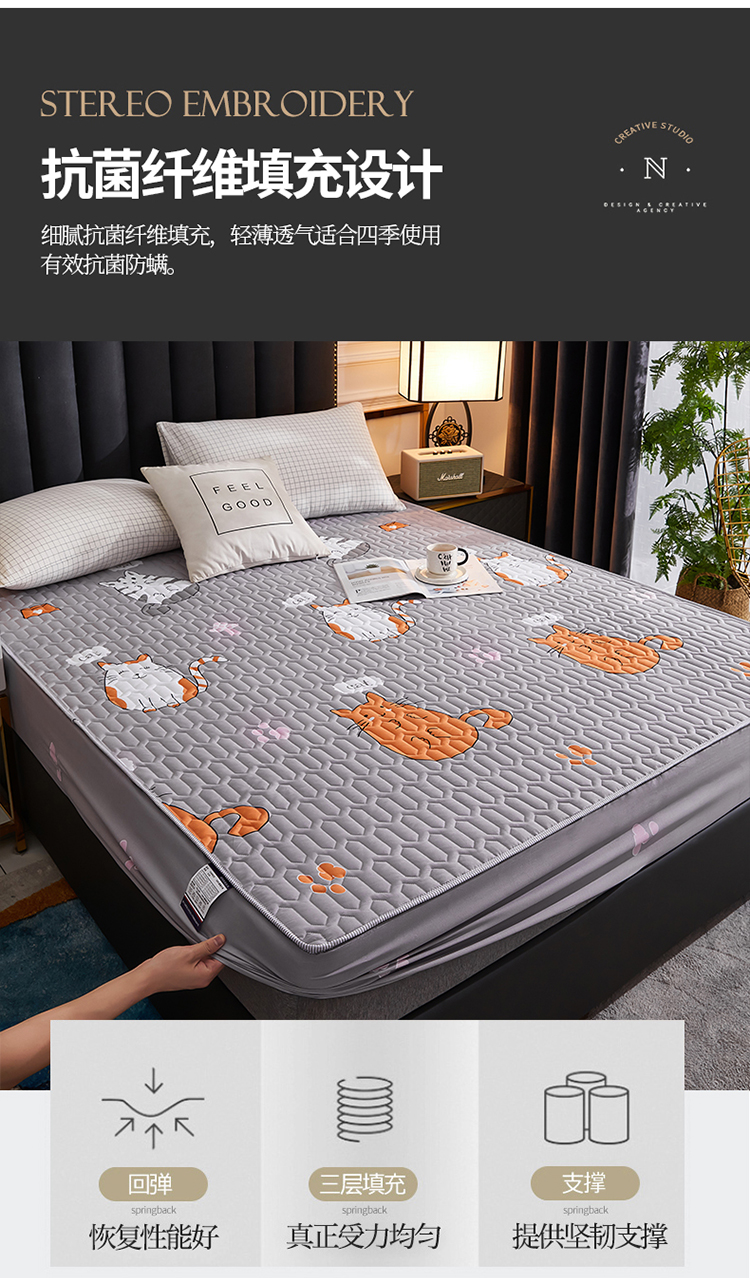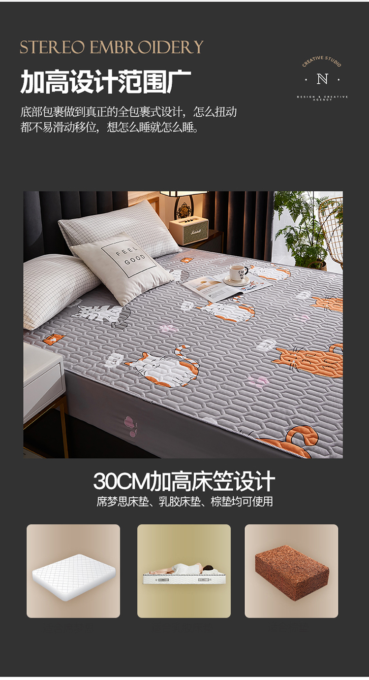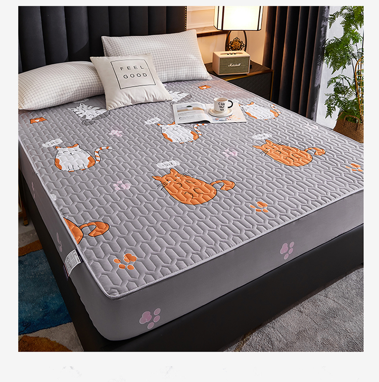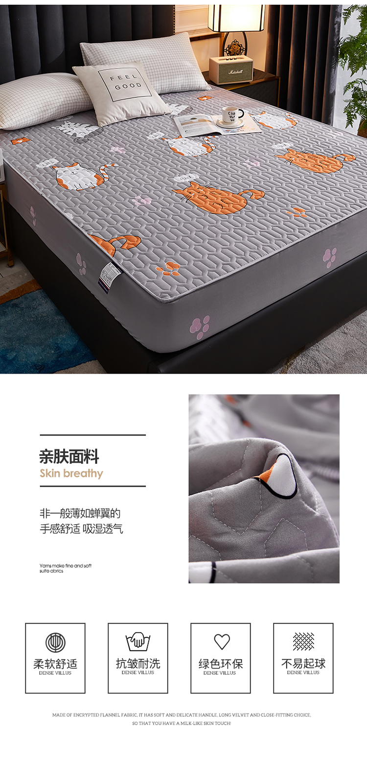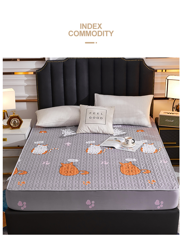• 91家纺网 家纺一手货源 找家纺 苏木年华2023新款抗菌加厚防水隔尿夹棉床笠 快乐猫
