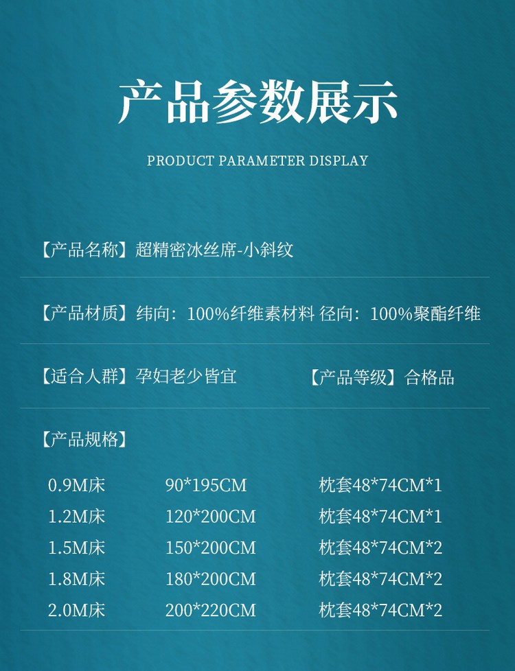 商品名称:小牛席业 2023年新款超精密冰丝席-小斜纹系列 绿色