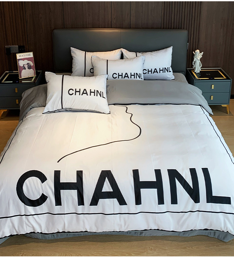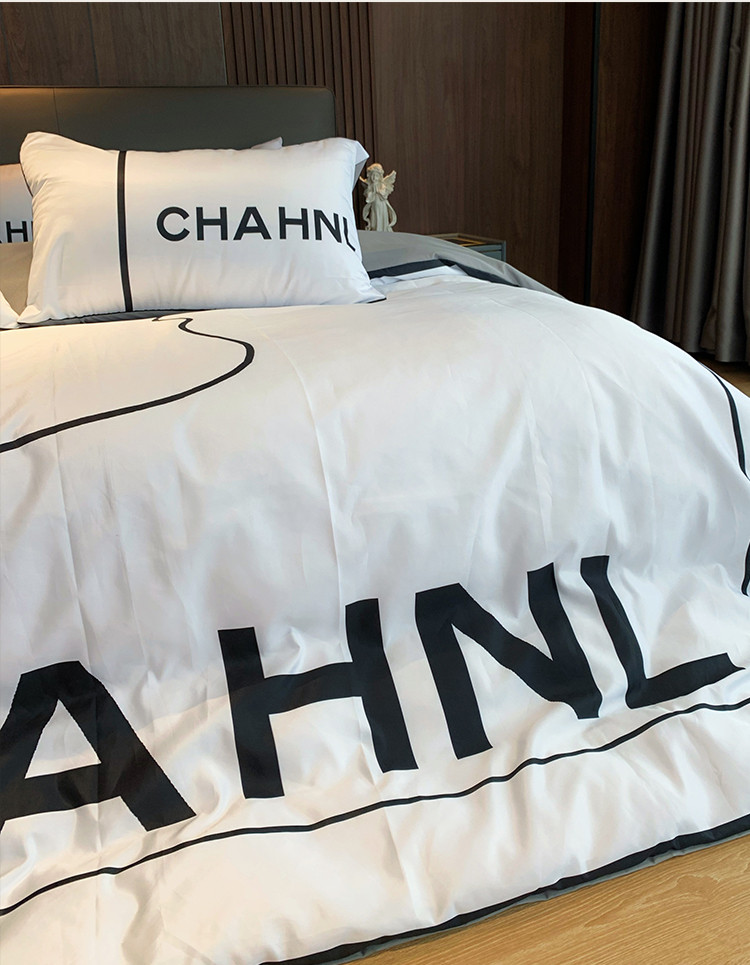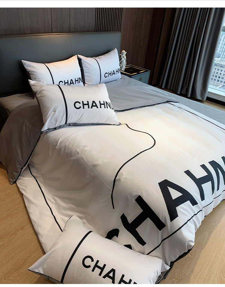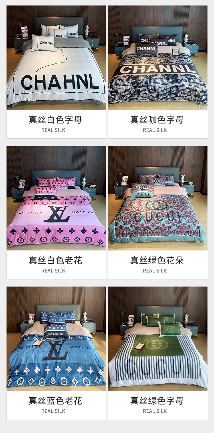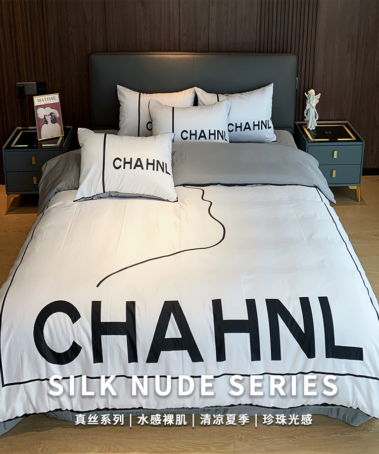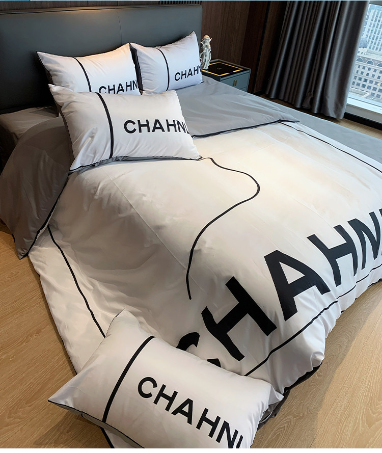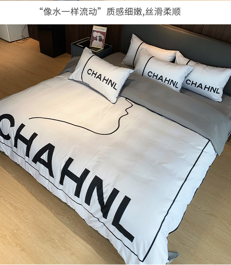 当前位置: 91家纺网 > 商品网购 > 床品套件 > 四件套 > 真丝四件套 > 色鬼布艺 2023新款水洗真丝大牌风四件套 白色字母