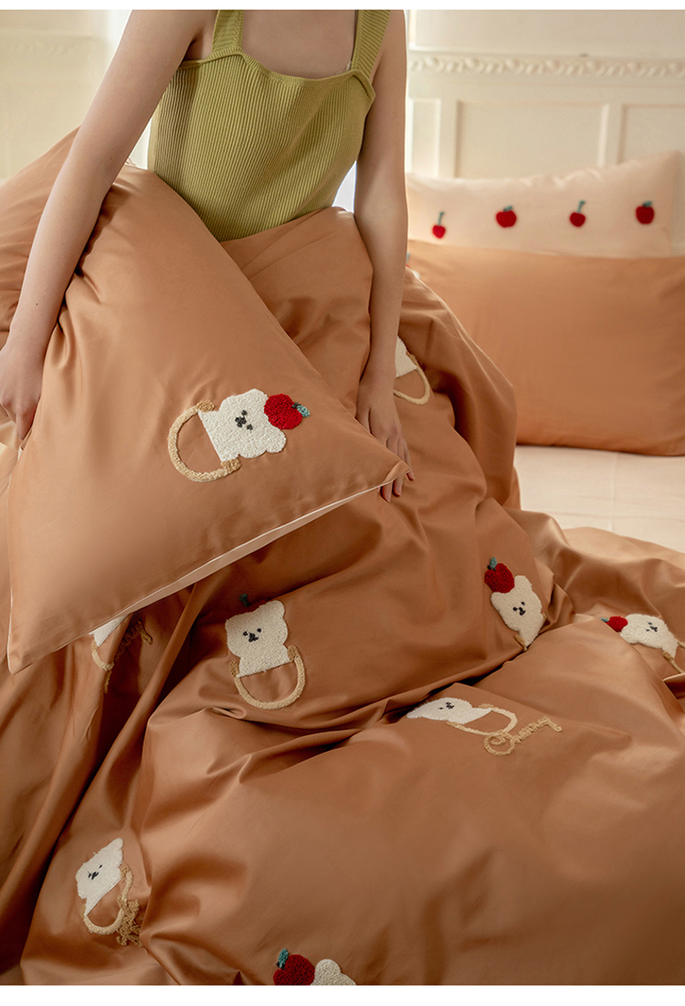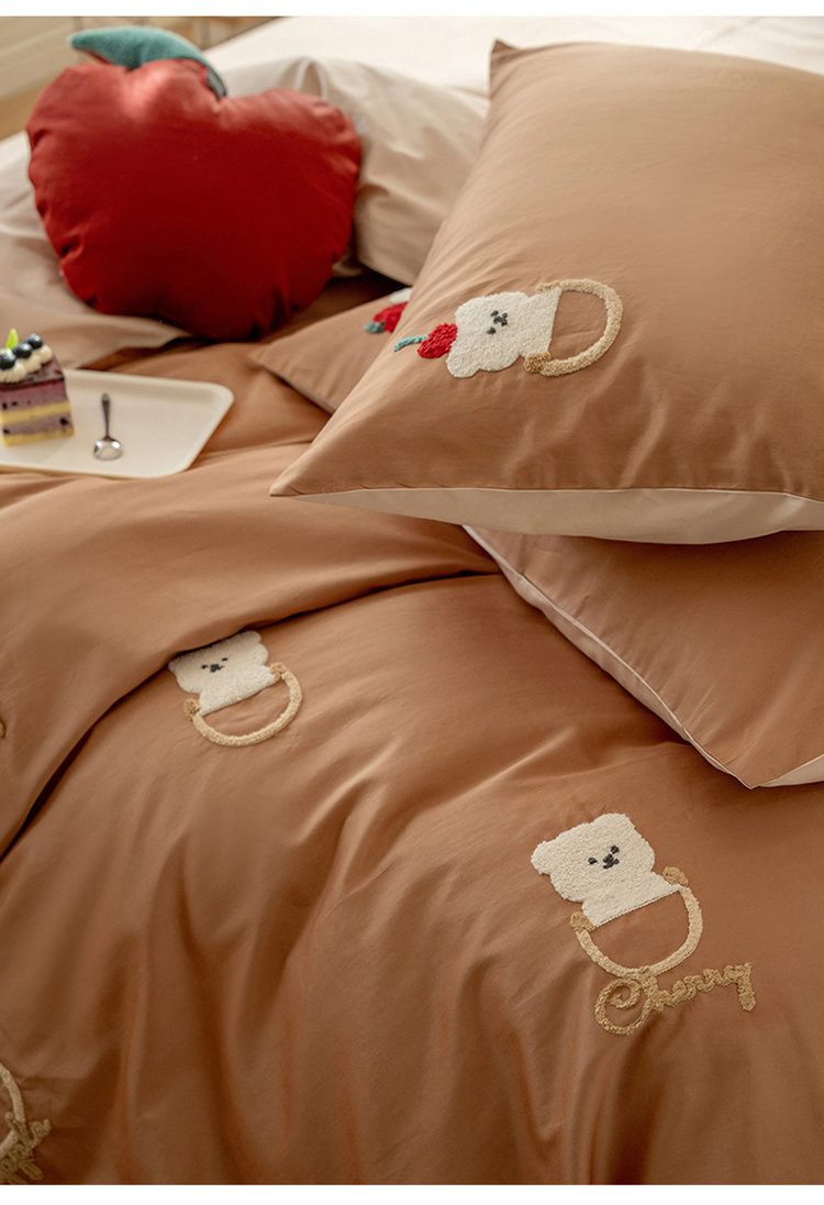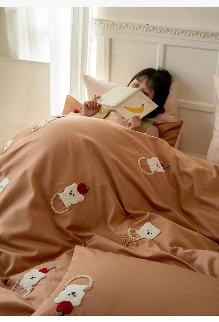 名品优仓 2023新款面包狗系列水洗棉毛巾绣四件套 豆豆熊