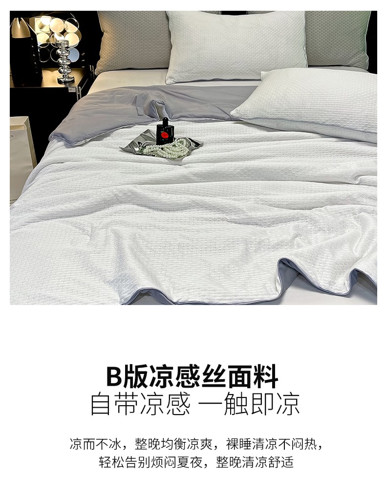 慕晨 2023新款A类华夫格凉感丝夏被空调被夏凉被 华夫格-白灰