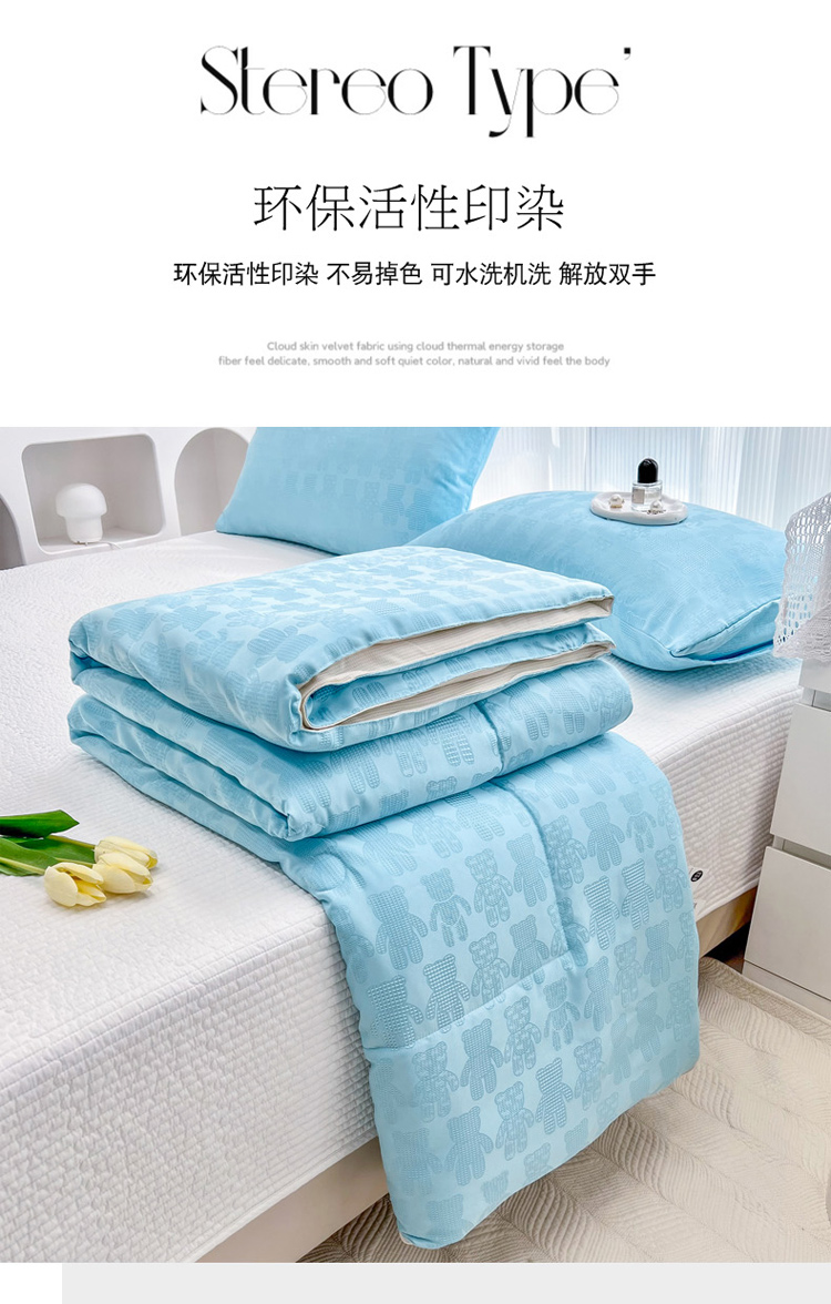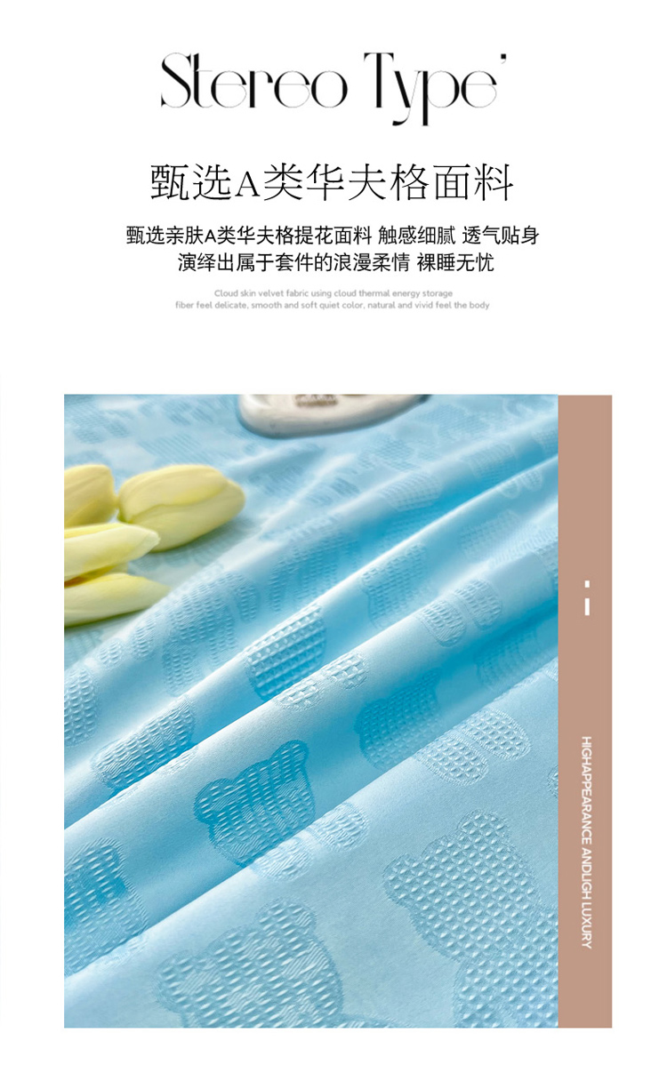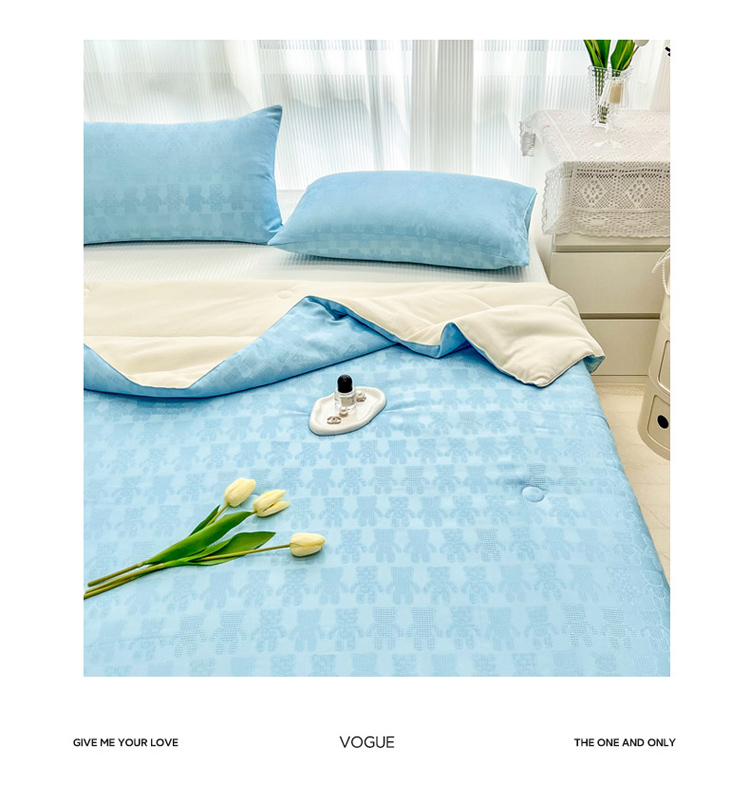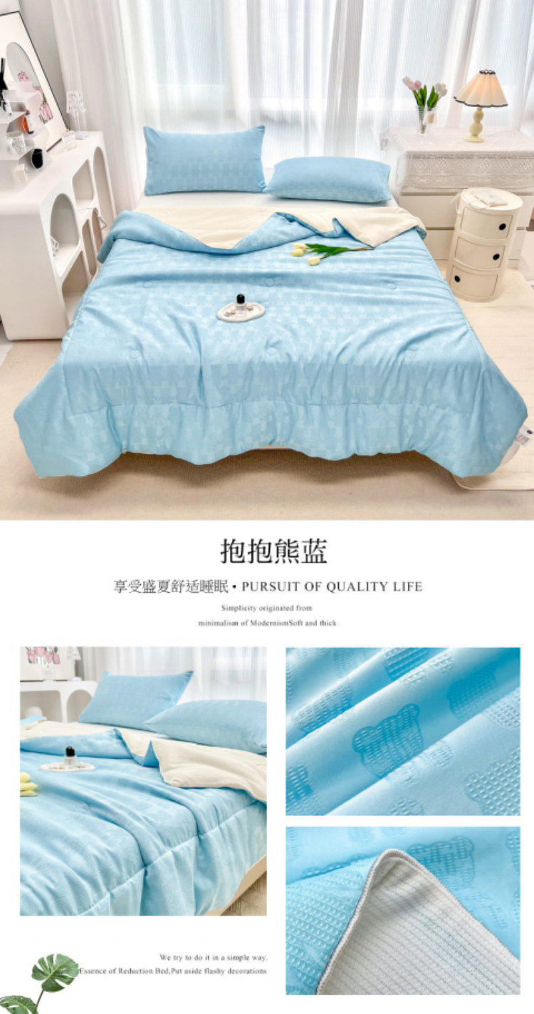 • 91家纺网 家纺一手货源 找家纺 寐居家纺 2023新款华夫格提花夏被 华夫格提花-抱抱熊蓝