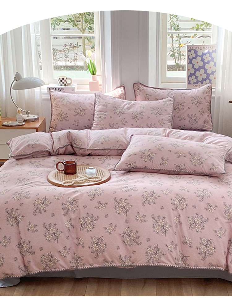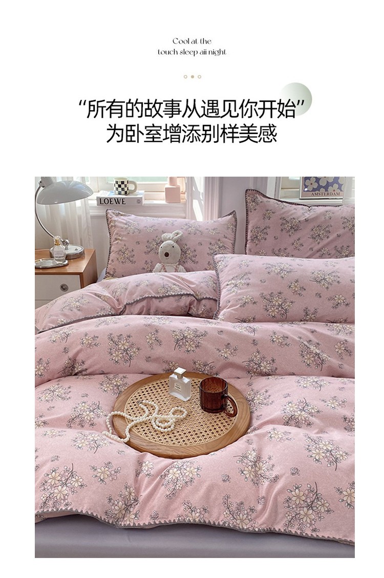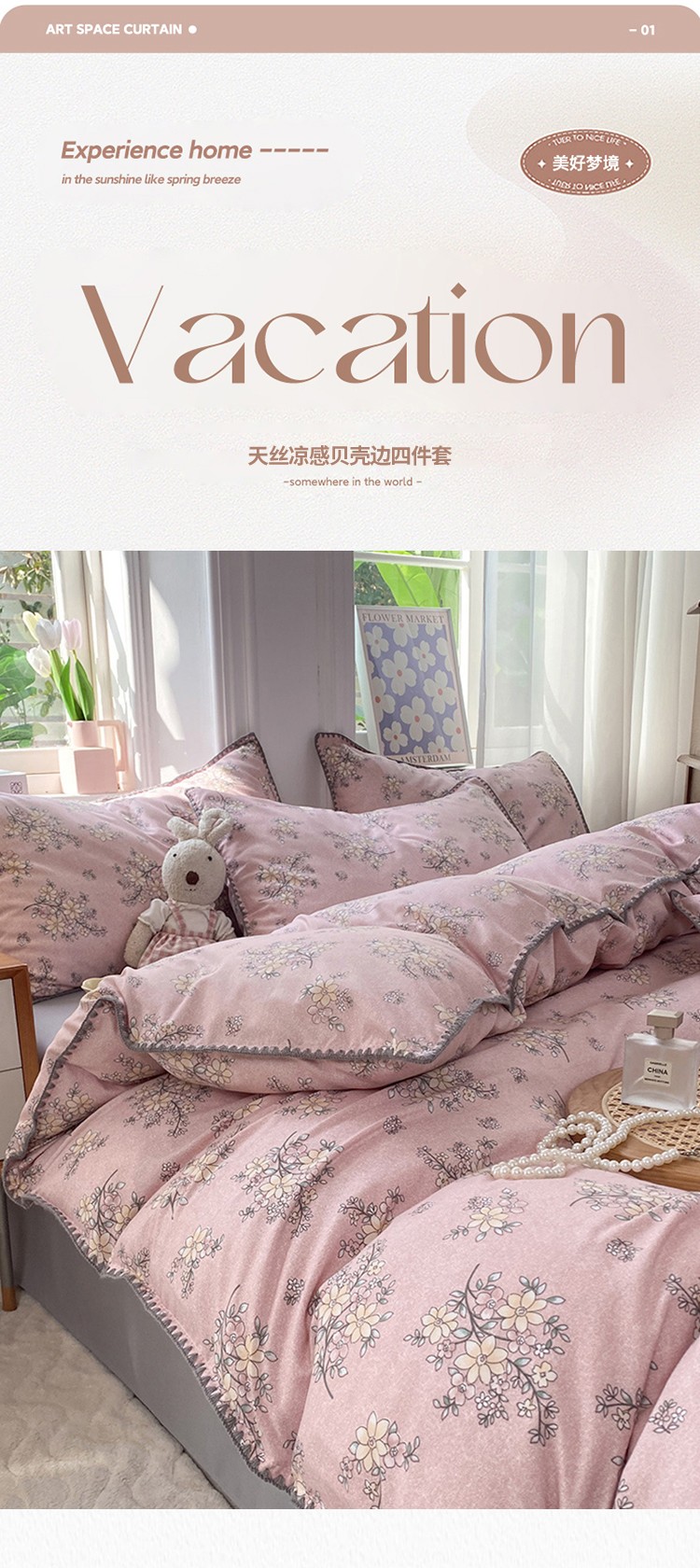 妖妖家纺 2023天丝凉感贝克边四件套 清香-豆沙
