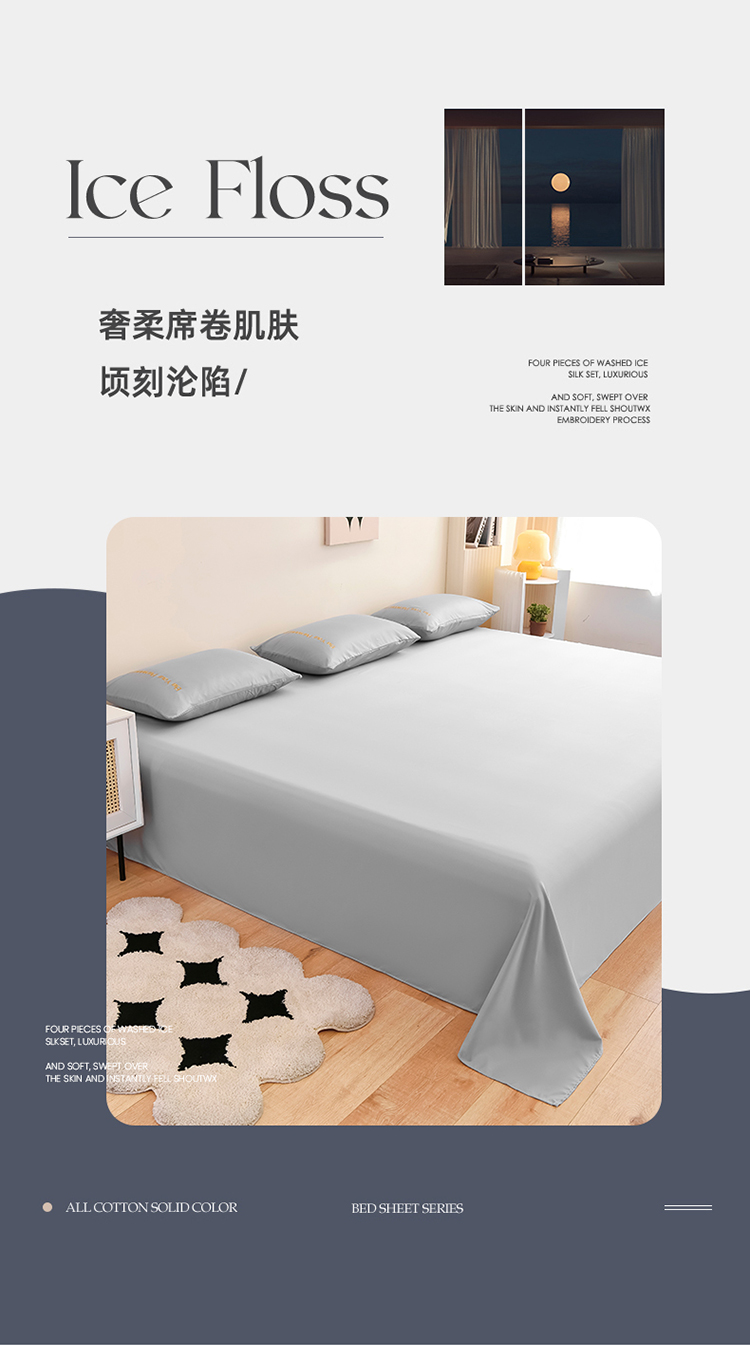 (总)七仙女家纺 2025新款全棉磨毛床单,高奢紫,活力灰,时光灰,时光米,香氛咖