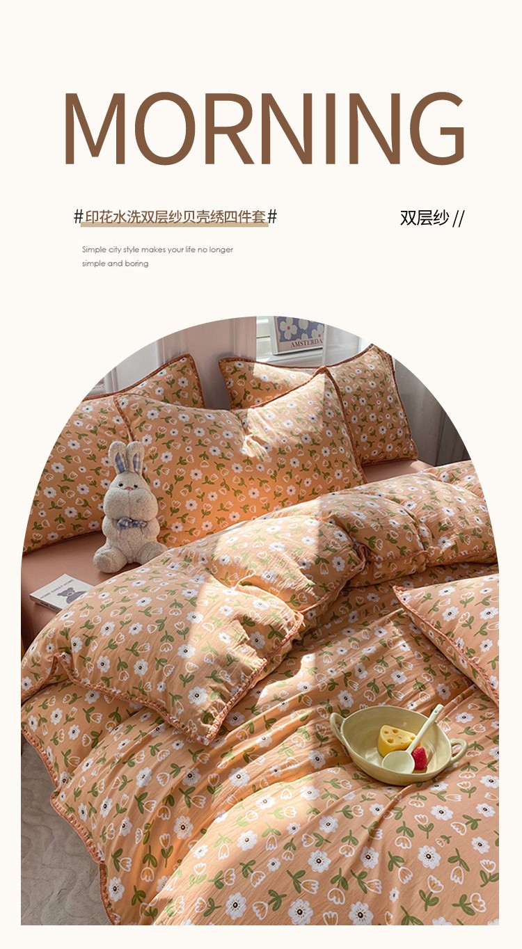 妖妖家纺 2023印花水洗双层纱贝克绣四件套 梦华