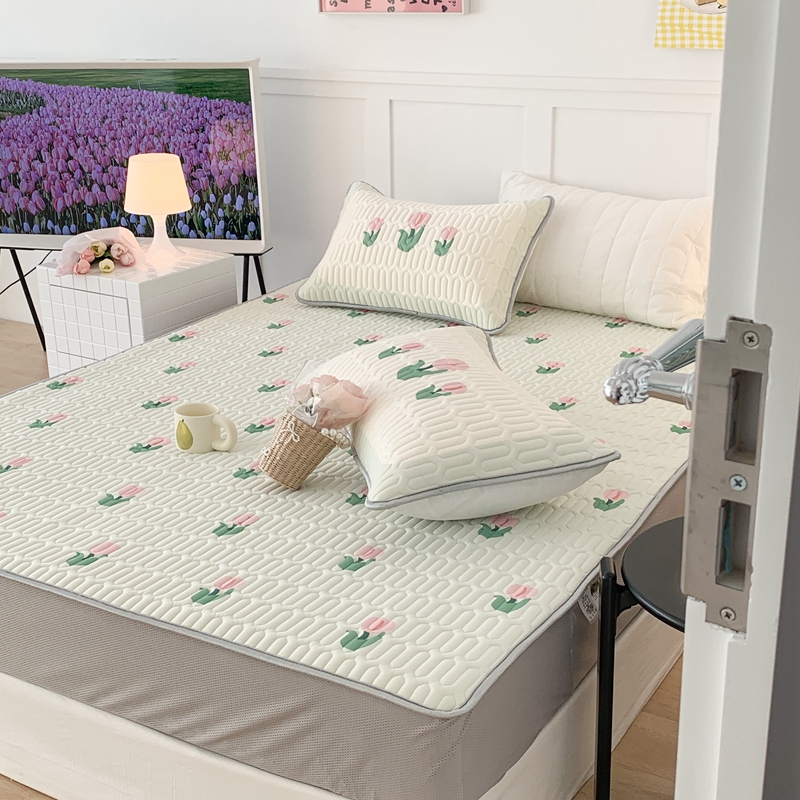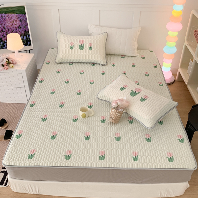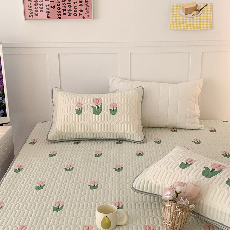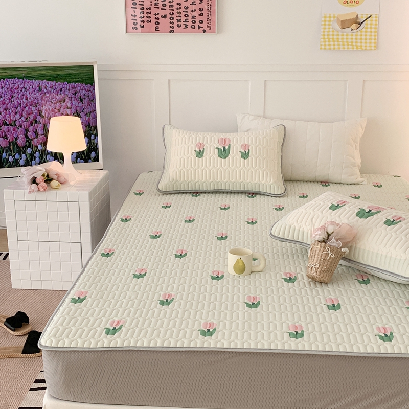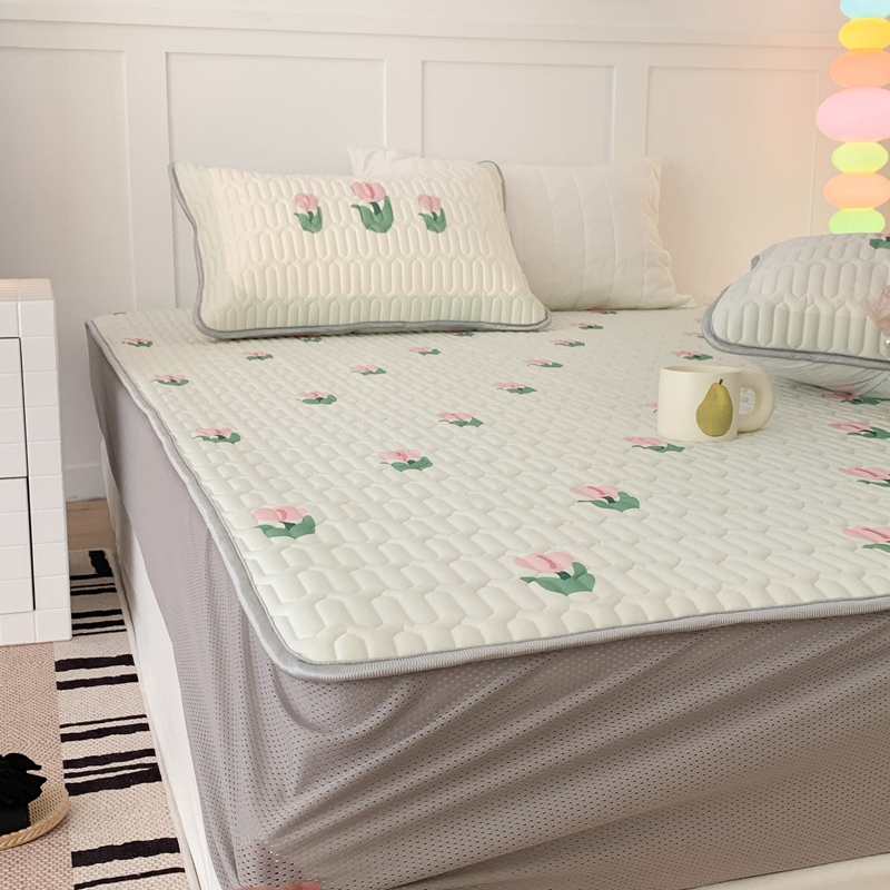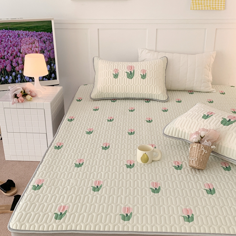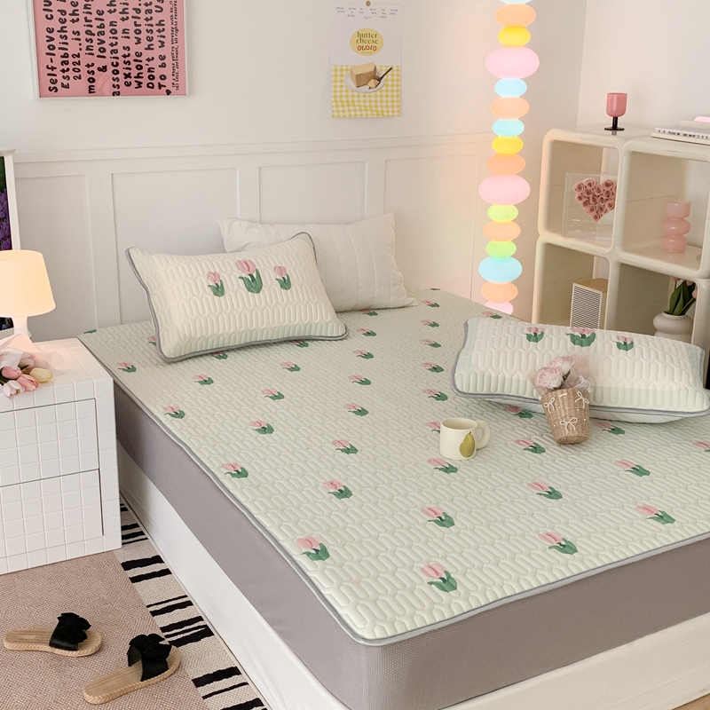 商品名称:昔可 2023新款床笠款乳胶凉席 淡绿底郁金香
