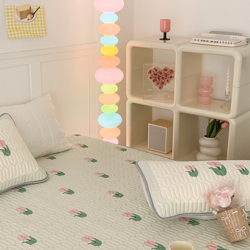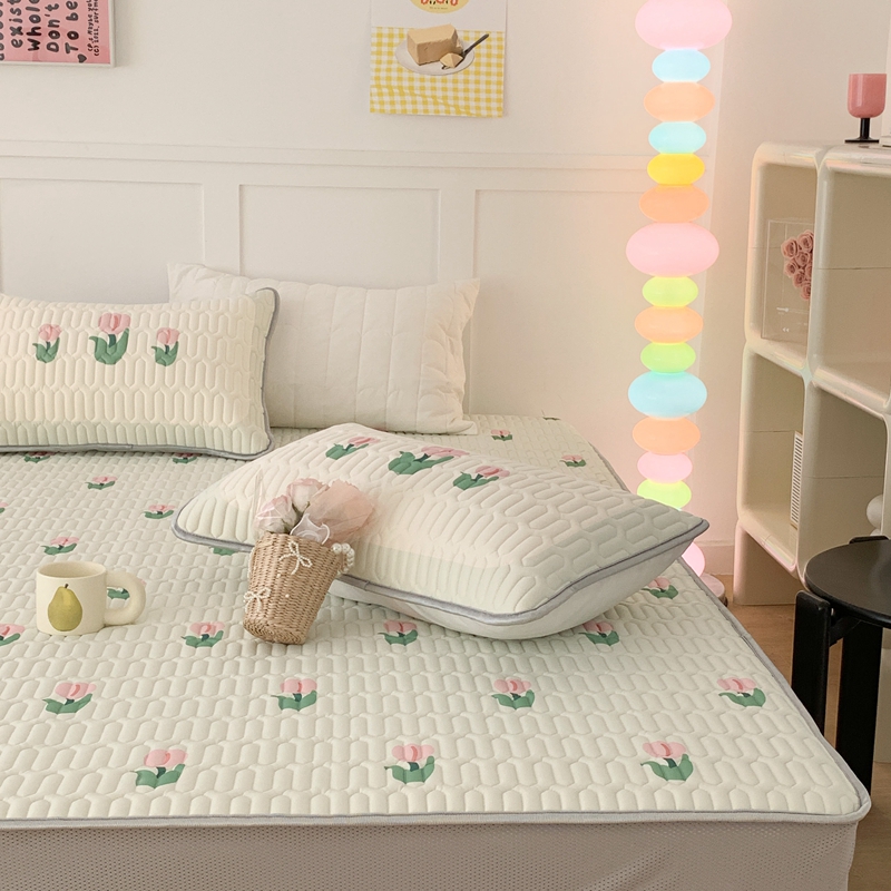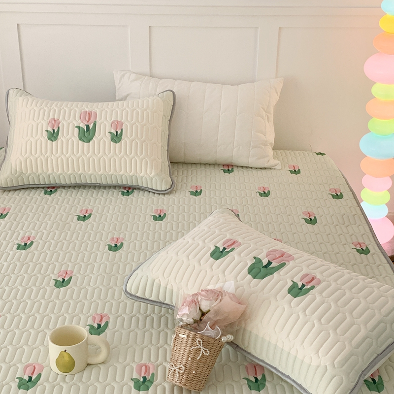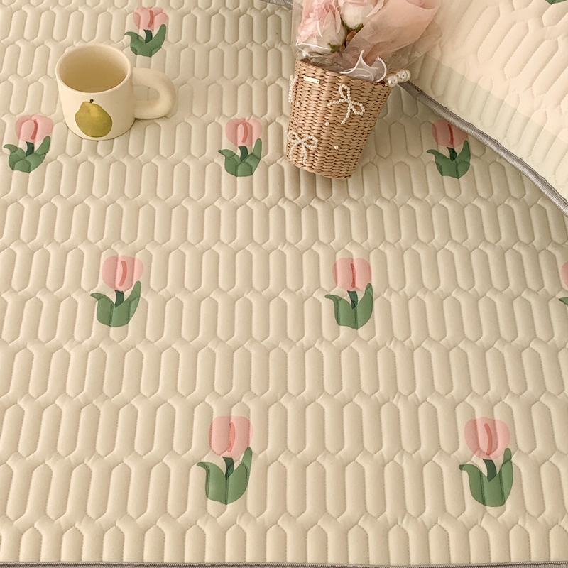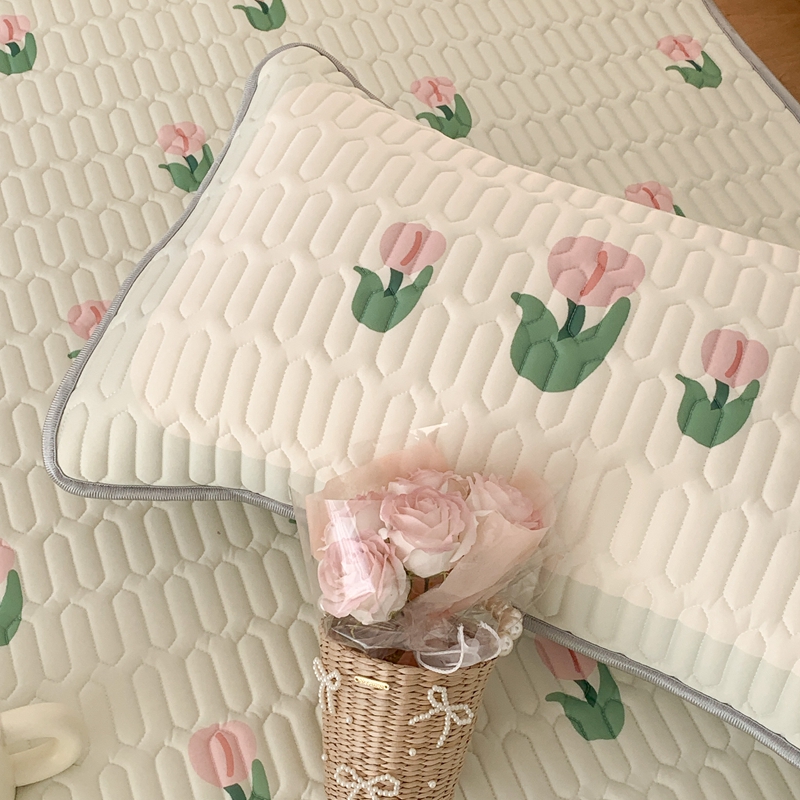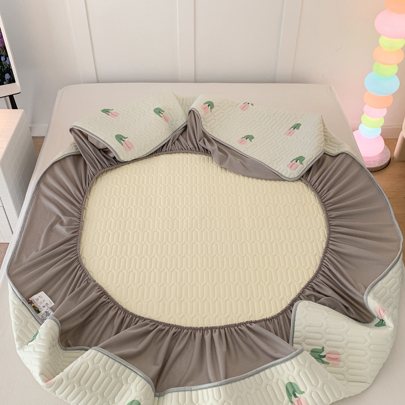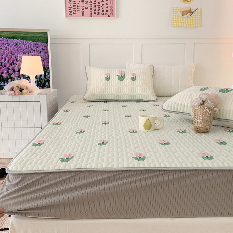 商品名称:昔可 2023新款床笠款乳胶凉席 淡绿底郁金香