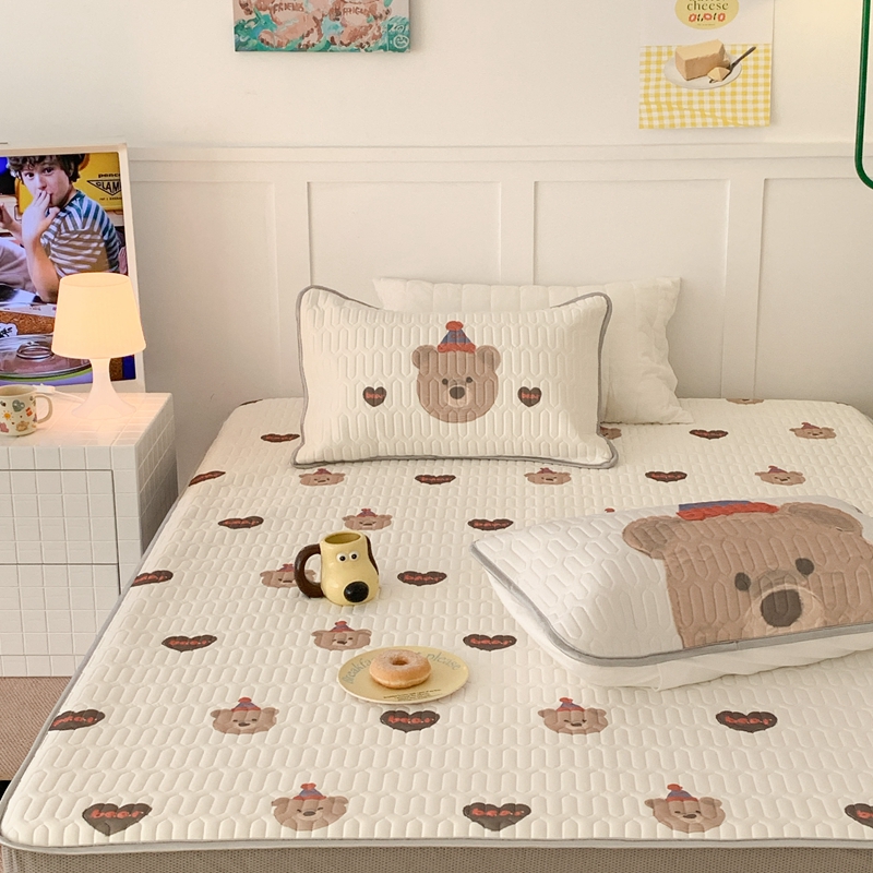 商品名称:昔可 2023新款床笠款乳胶凉席 油画爱心生日熊