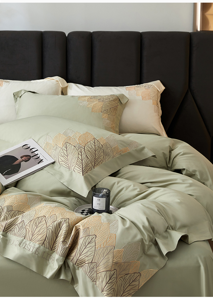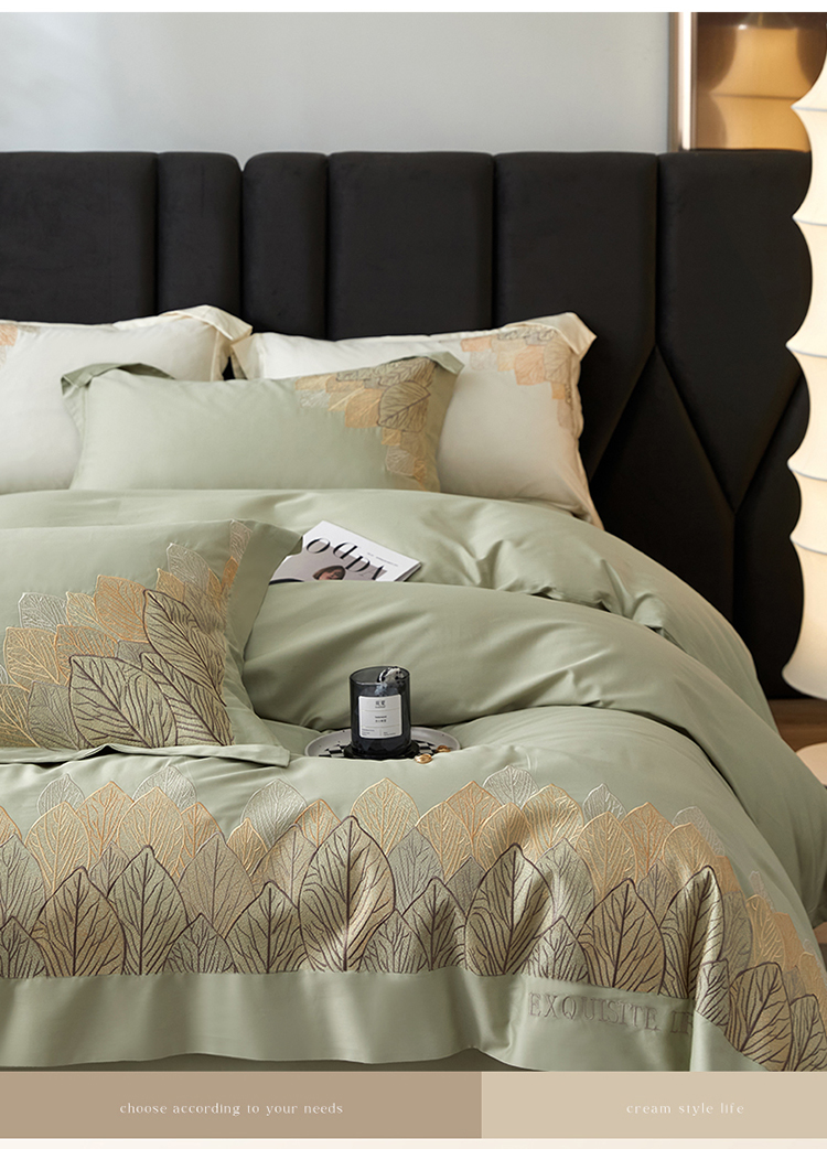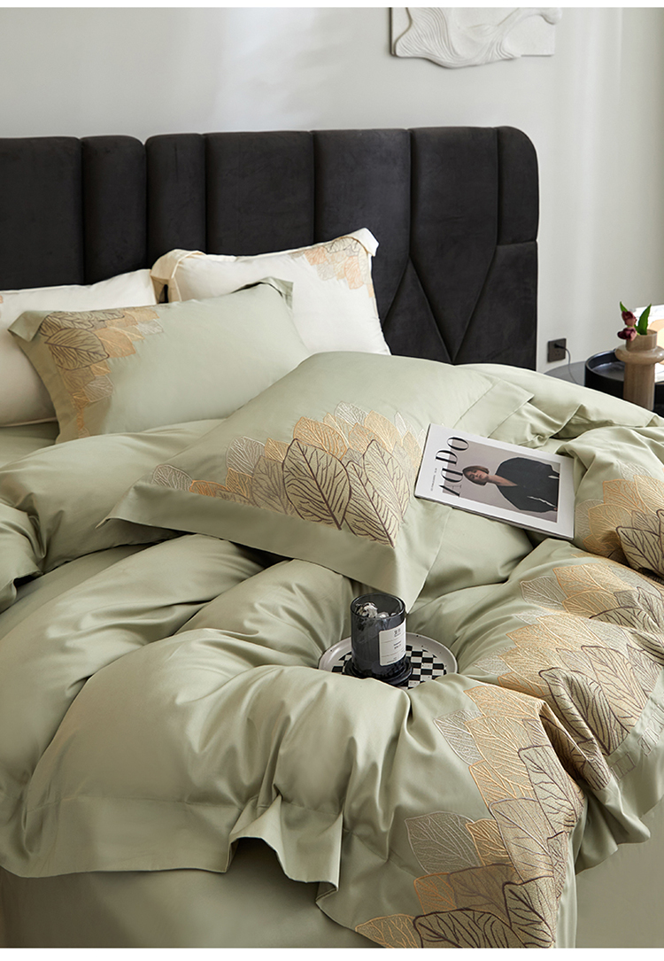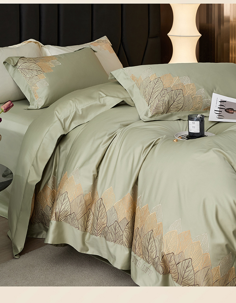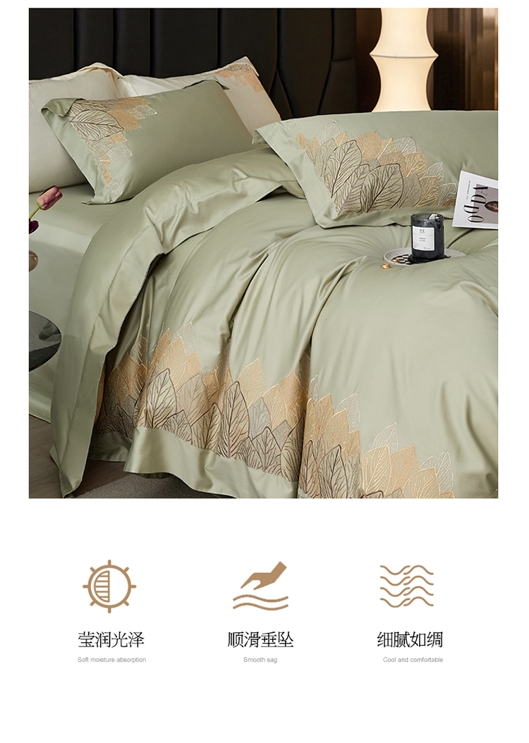 商品名称:名品优仓 高支高密长绒棉刺绣款四季可用四件套朵芮雅系列 朵芮雅一芝士绿