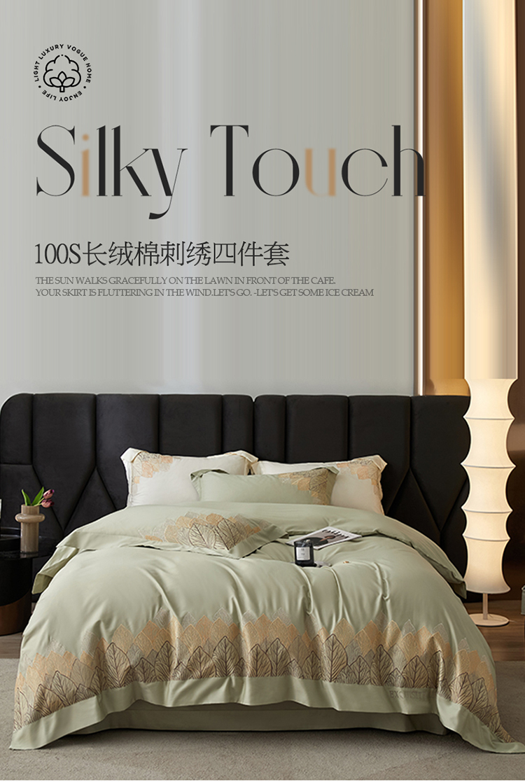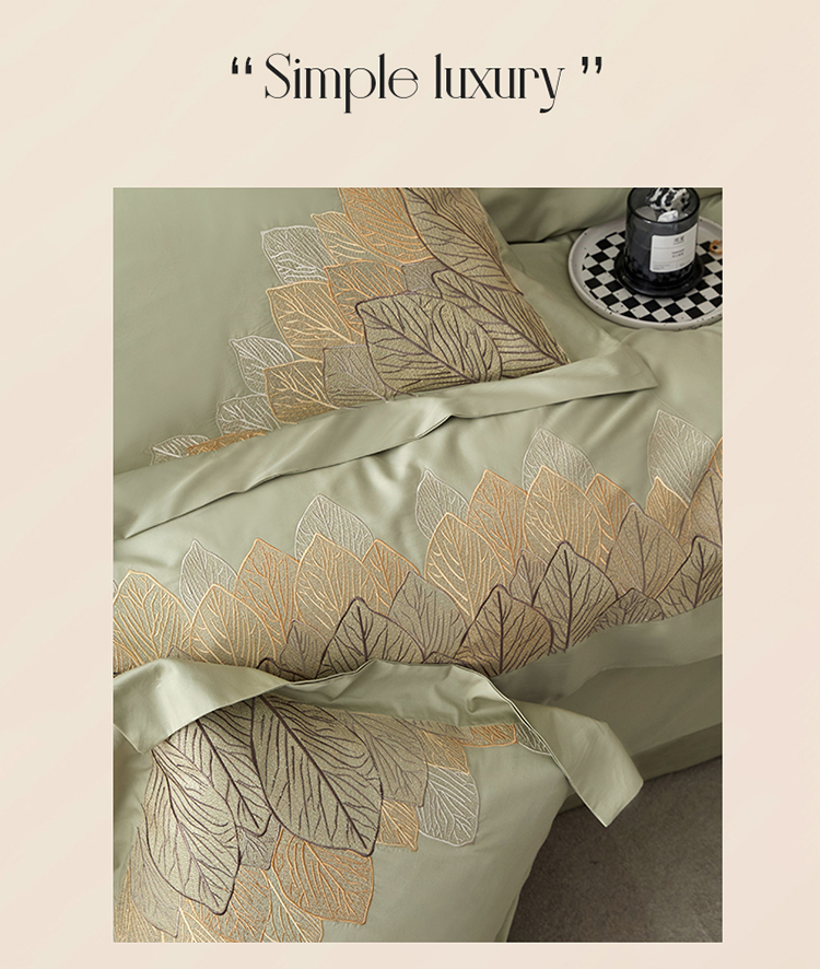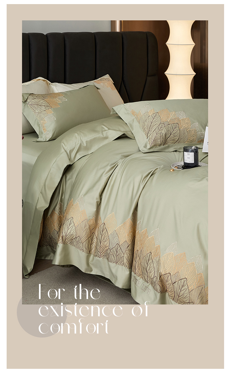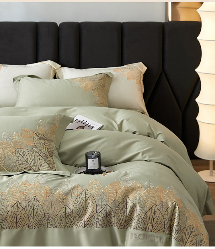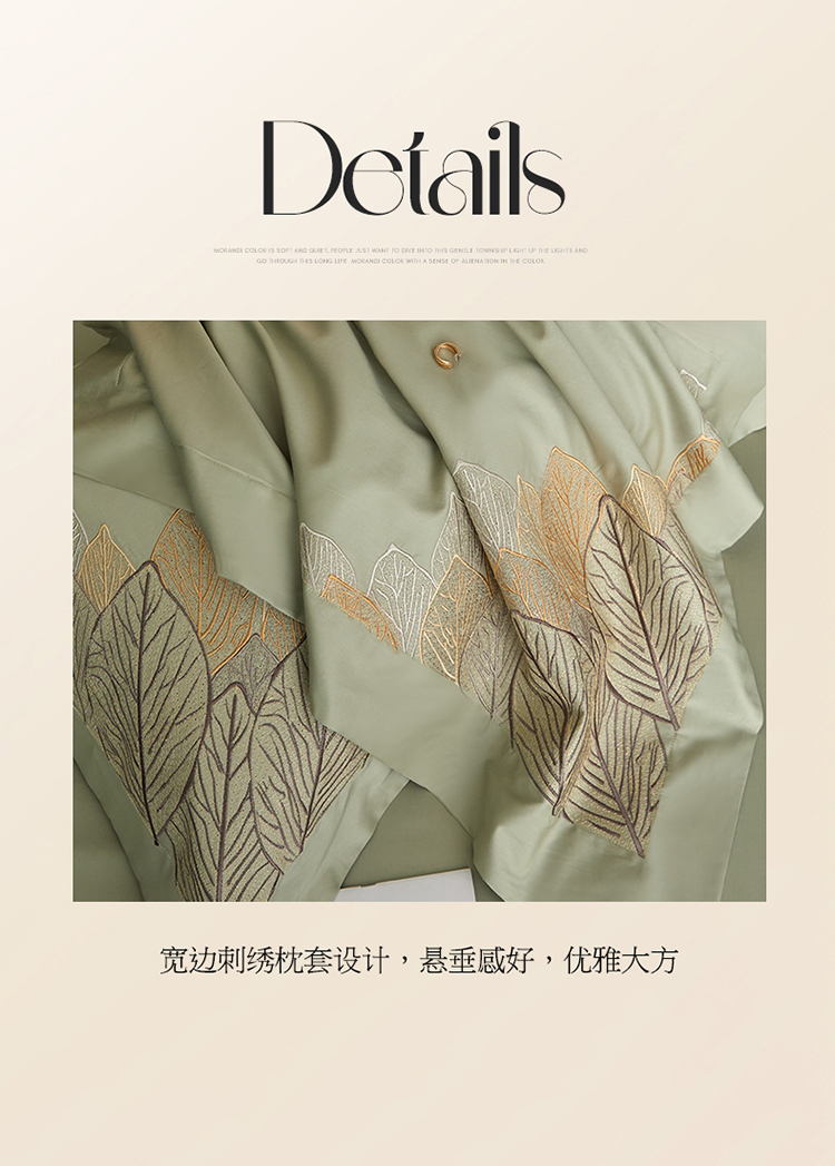 商品名称:名品优仓 高支高密长绒棉刺绣款四季可用四件套朵芮雅系列 朵芮雅一芝士绿